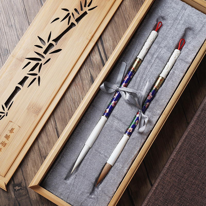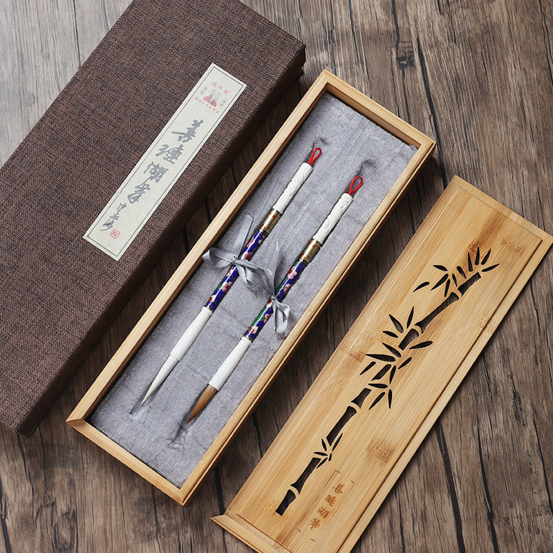 Lanzhai Jingtai Blue to pen Brush Boutique Gift Box kit Shanlian Town Lake Pen Wolf Millennials With Collection Certificate Can Pull-out Innovative Bamboo Box Adult Gift collection for self-use Wenfang Four Treasure