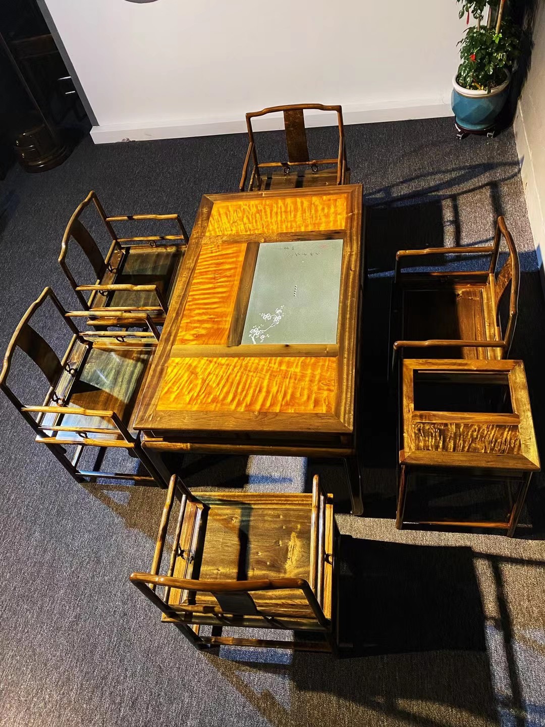 Jinsi Nanmu gloomy wood tea table seven-piece small leaf Zhennan solid wood kung fu tea table combination new Chinese living room