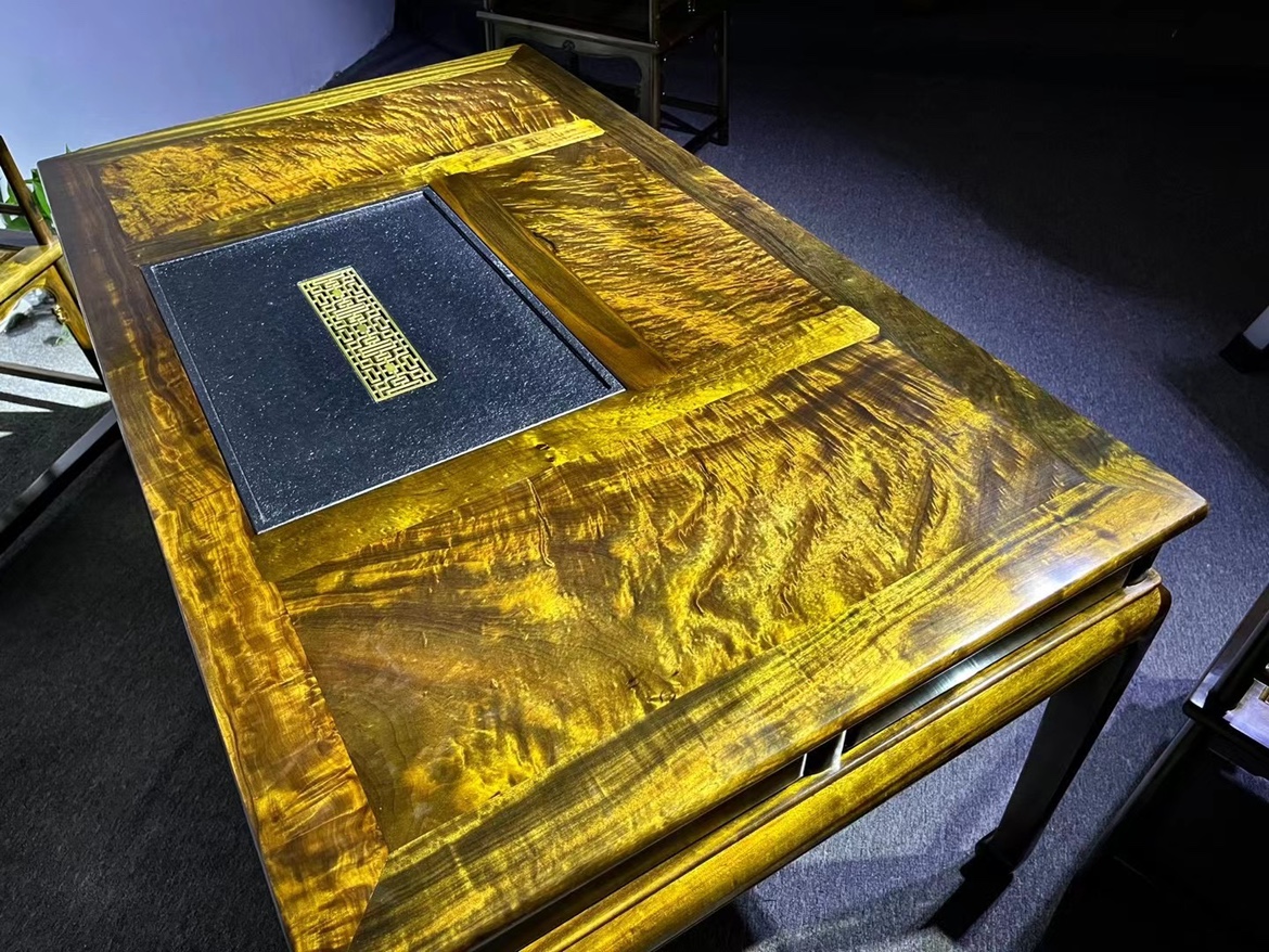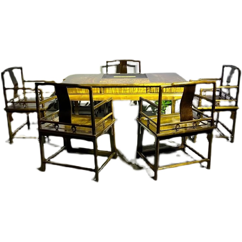 Golden wire wooden wooden tea table seven piece set of small leaves, zhen-nan solido tea table combination Chinese living room