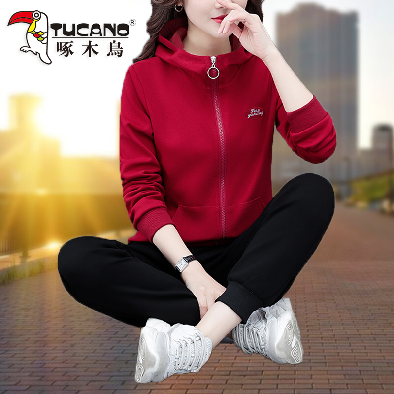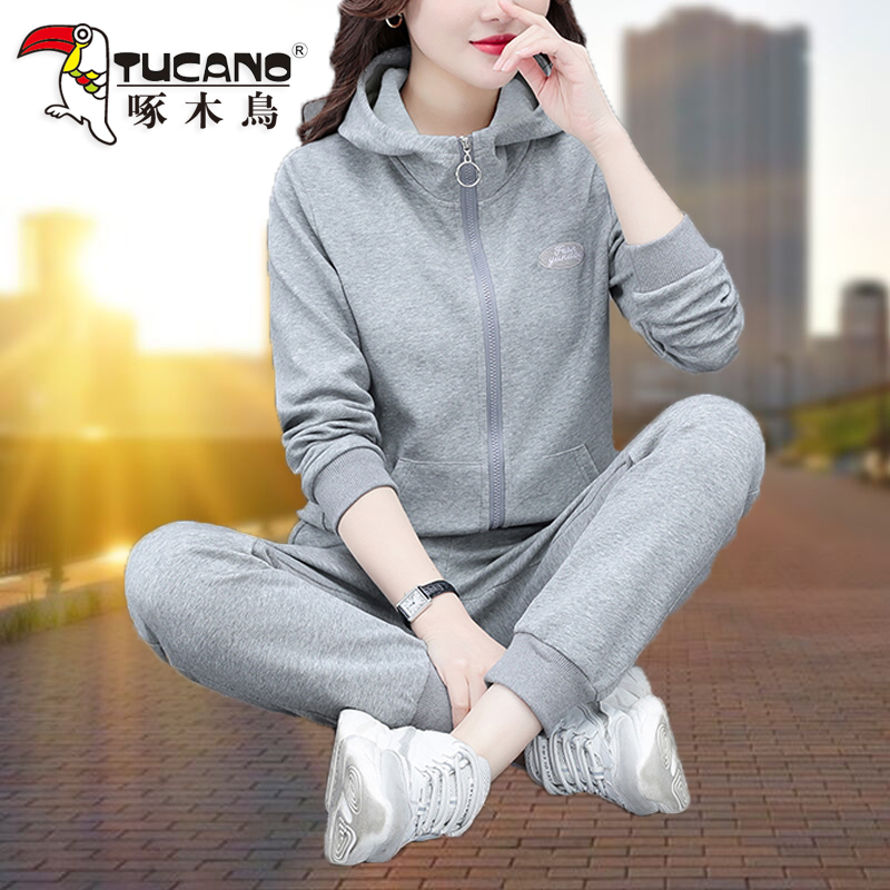 Woodpecker sports suit female spring and autumn 2022 new hooded Korean version loose fashion casual clothes slimming two-piece set