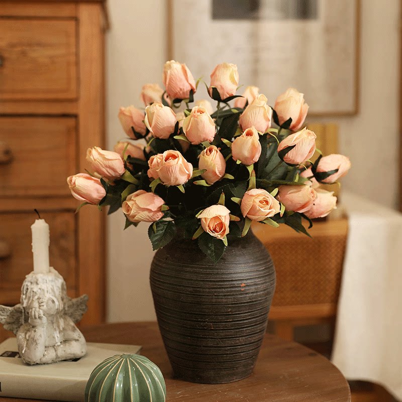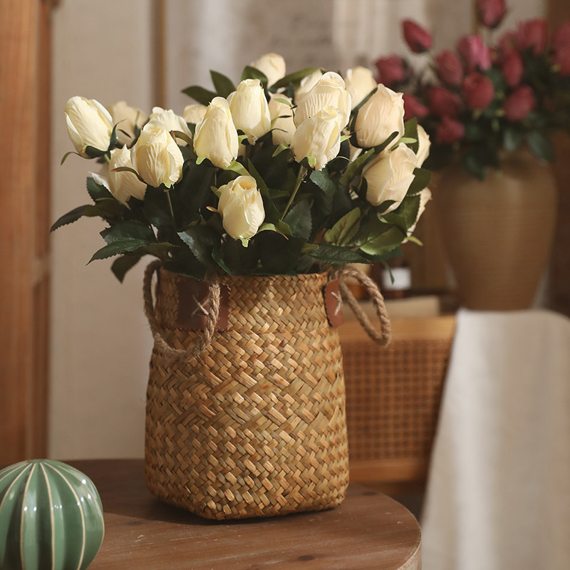 Package F (3 bunches of light pink retro bottles) 3 bunches of 9 roses-milk white Package E (3 bunches of milk white retro bottles) 3 bunches of 9 heads of roses-light pink Package A (3 bunches of purple handmade baskets)