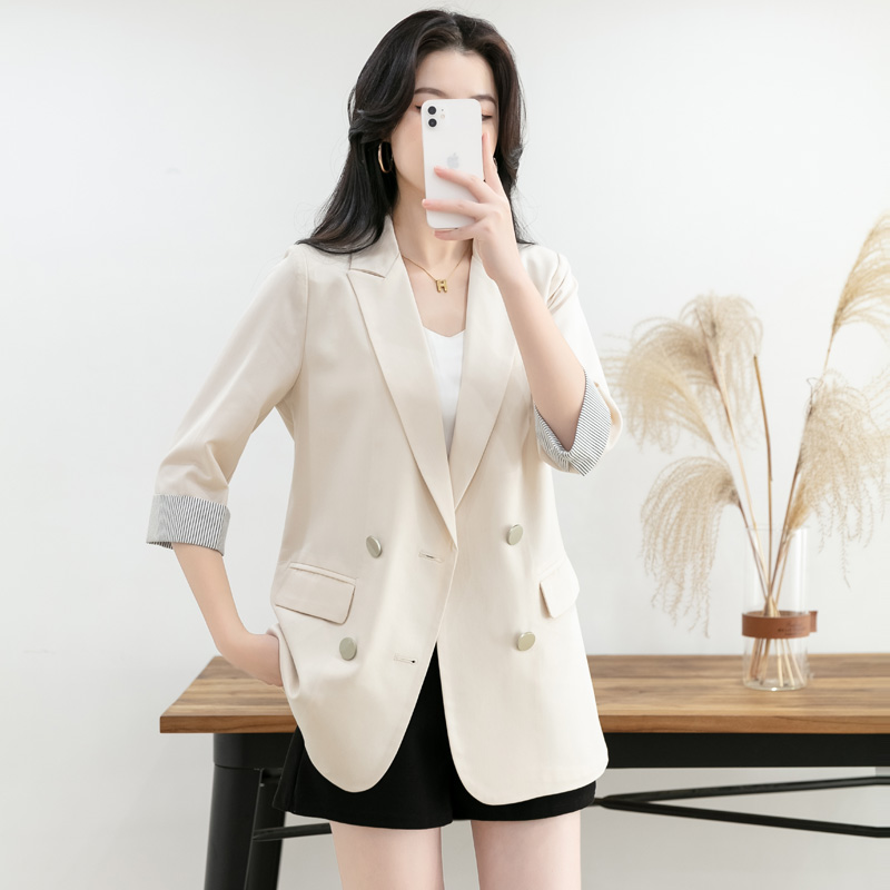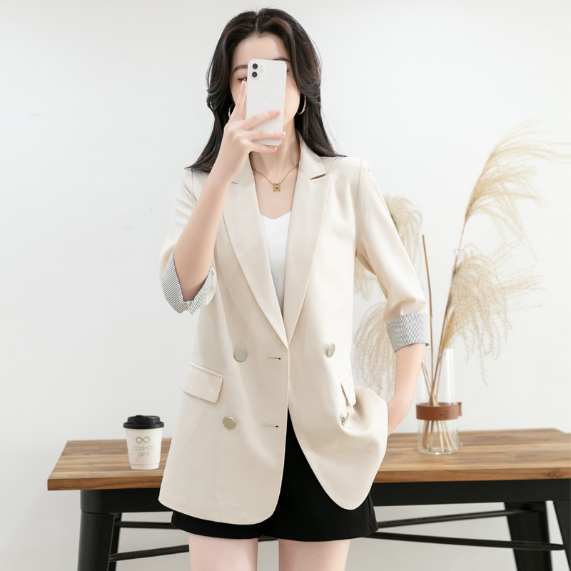 Suit jacket women's three-quarter sleeves early 2022 spring striped casual top new loose temperament suit women