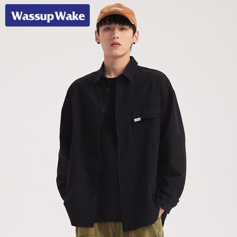 Wassup wake long sleeve shirt men's tide brand ins personality handsome spring Japanese casual shirt cotton coat