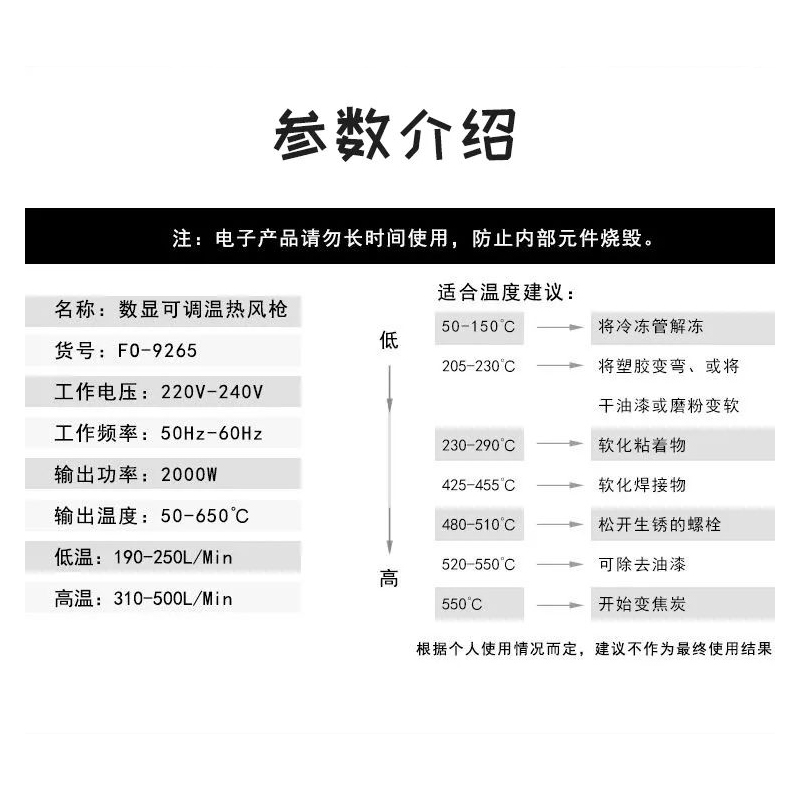 Fukuoka hot air gun number is adjustable temperature car tape roasting gun heat shrinkage industry-level hair dryer electric tool