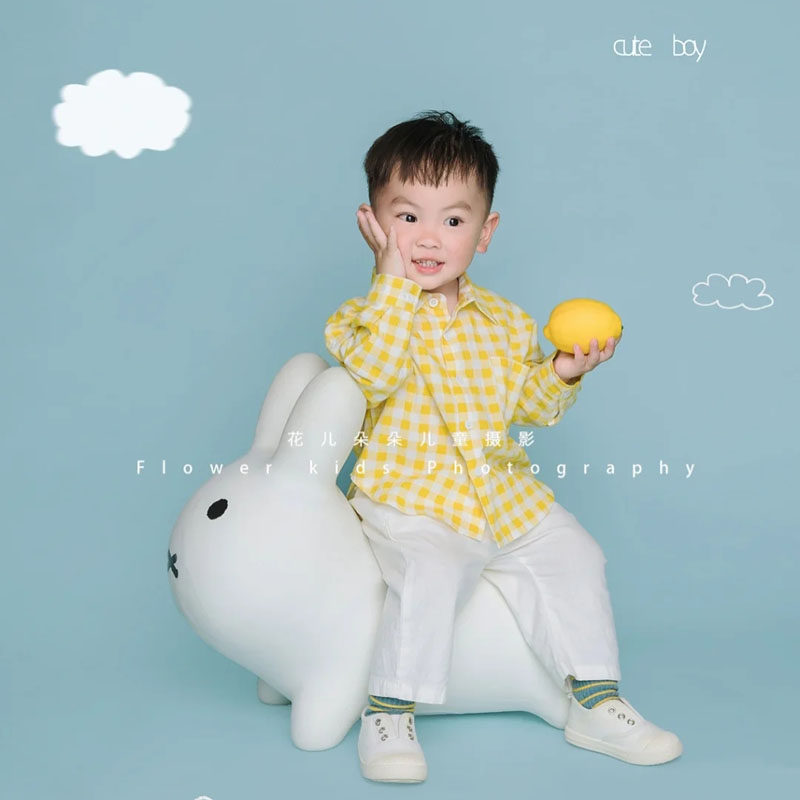 Children's photography props white inflatable rabbit seat soft rubber Nordic style real scene layout decoration cute jumping rabbit