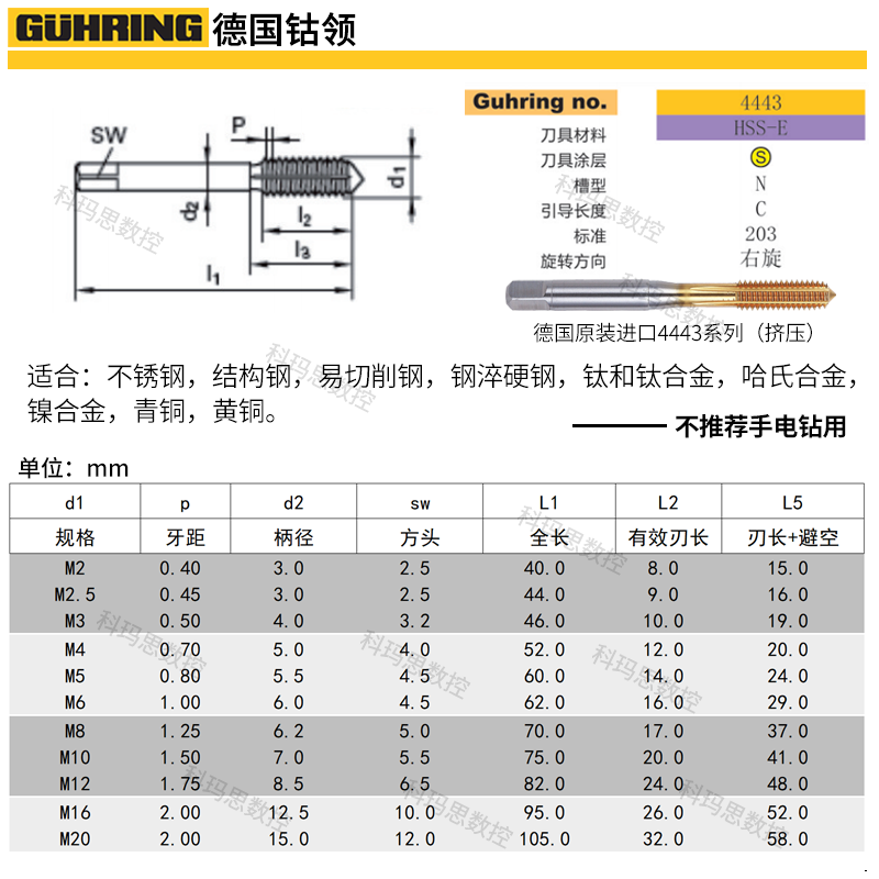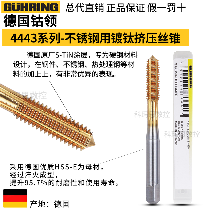 Germany imported cobalt collar 4443 titanium - plated cone m3m4m5m6m8 stainless steel machine with cobalt extrusion wire attack