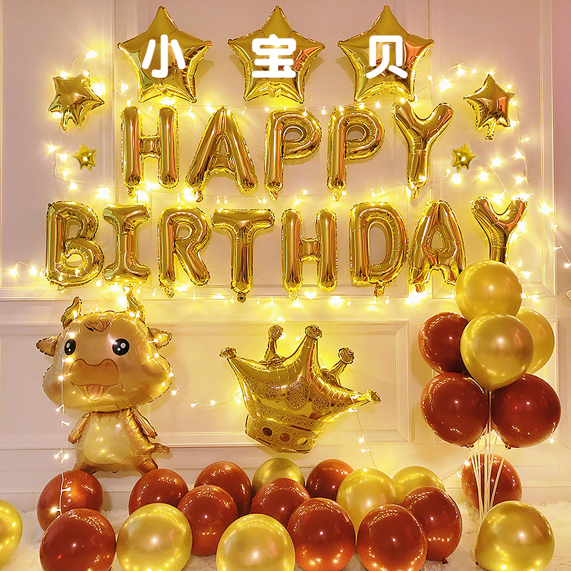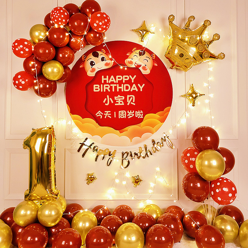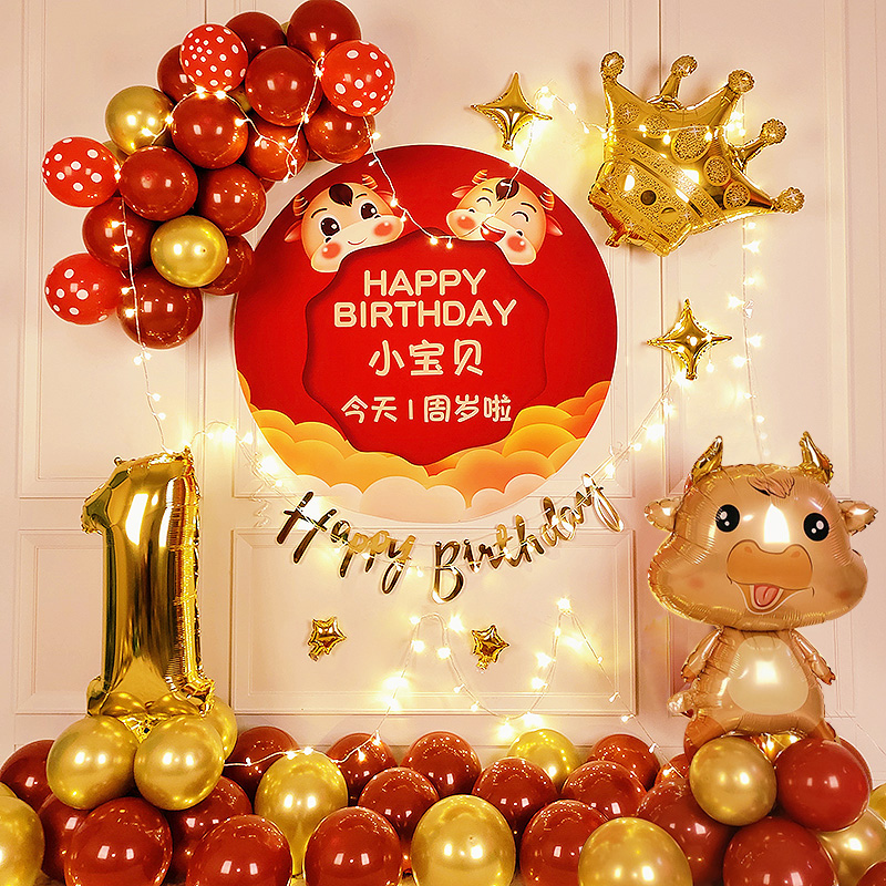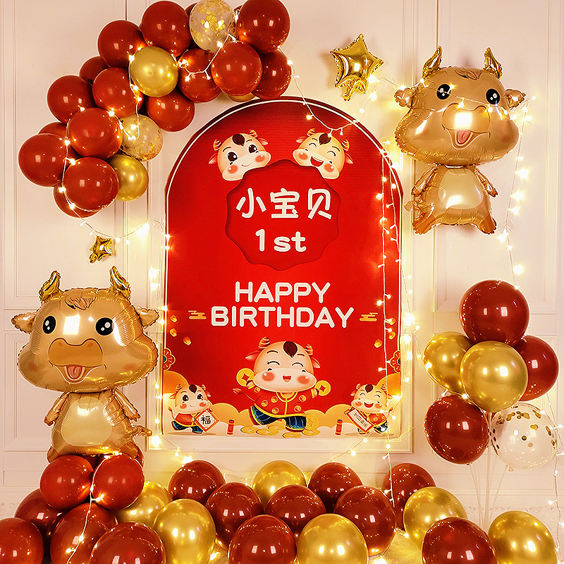Birthday Balloon Party Decoration Scene Placement Boy Girl Bull baby grabbing a week of the week Hundred Day Banquet Background Wall