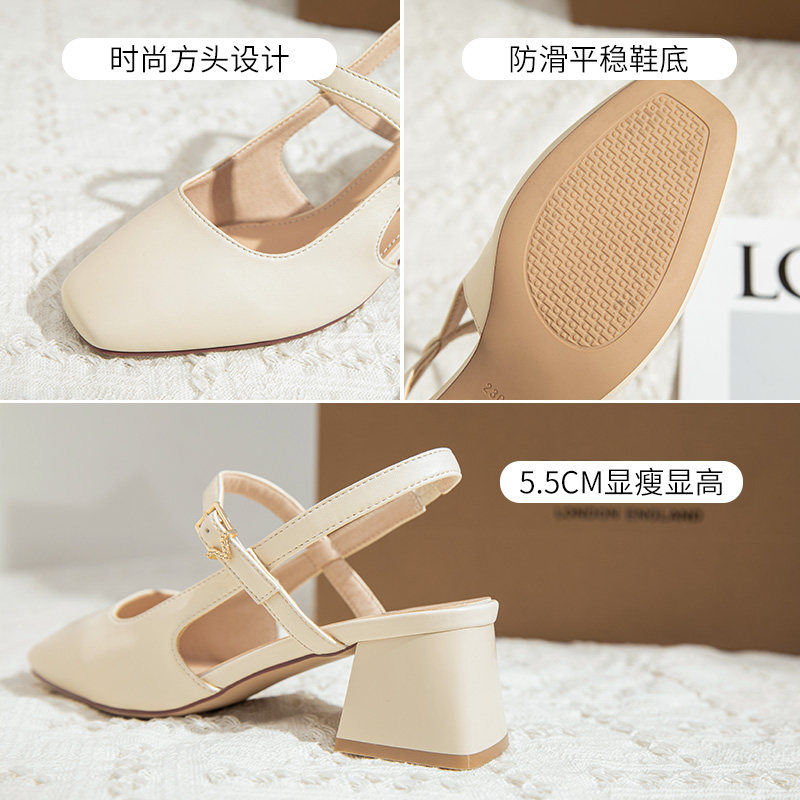 Baotou sandal women 2022 New Summer Fashion coarse heels High heel style single-shoe Korean family Mary Jane Little Leather Shoes