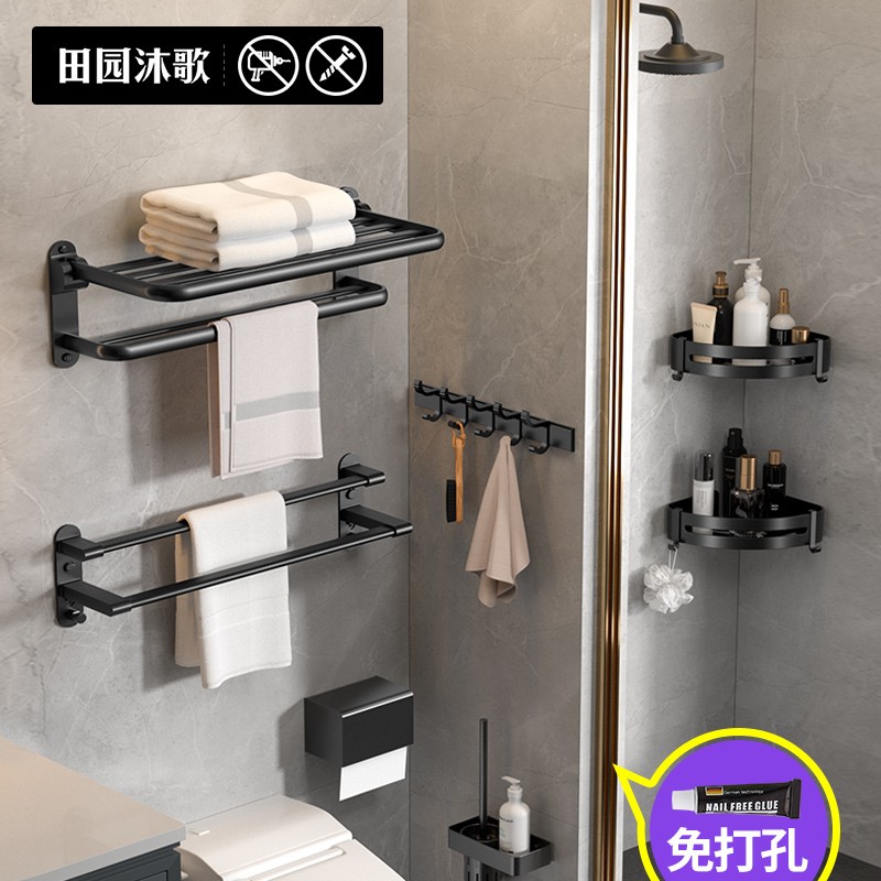 Makeup Room Hair Towel Rack Free to punch bathroom Toilet Shelf Wall-mounted Space Aluminum Black Mesh Red Bath Towels