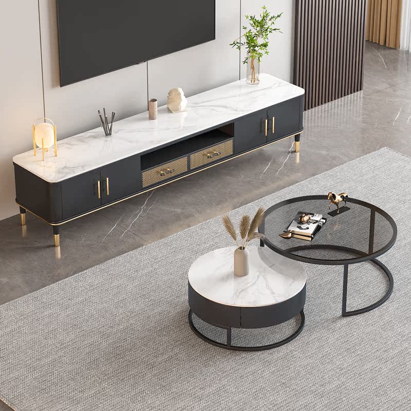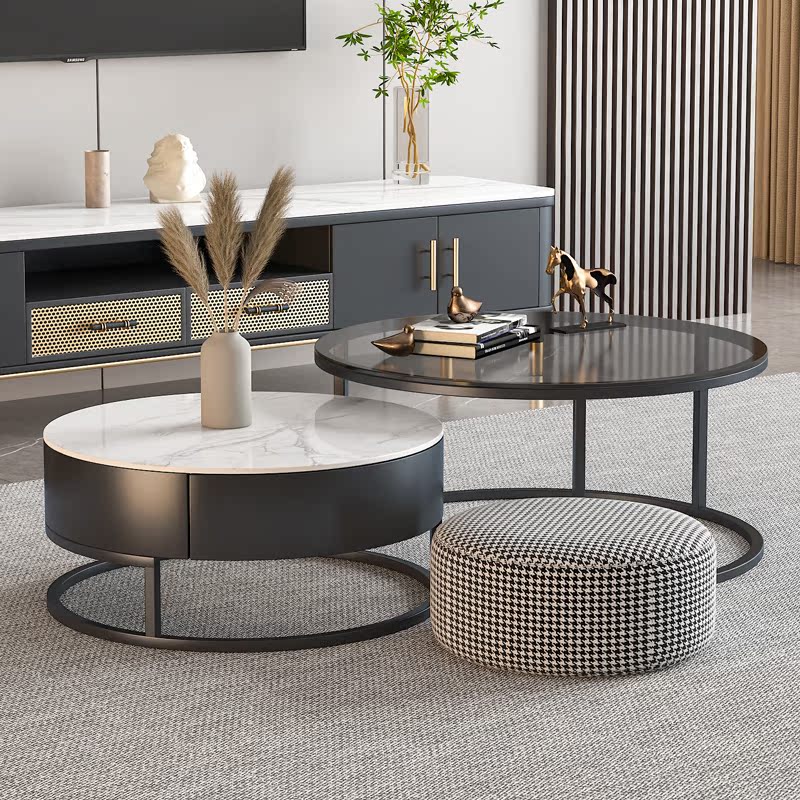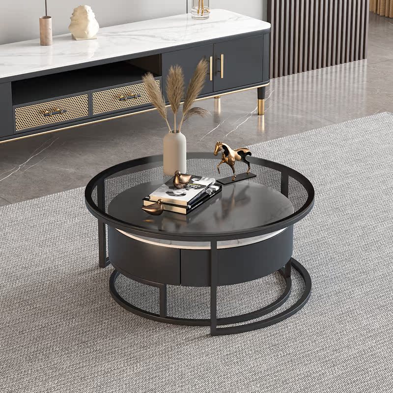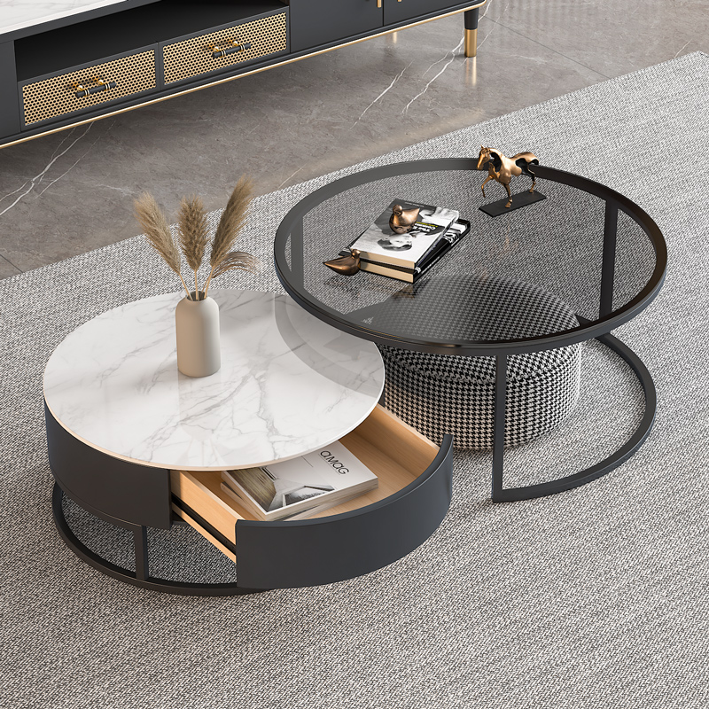 Light and luxurious slab tea table Living room Home Small family Type modern minimalist Fancy Circular Glass Tea Table Table Removable
