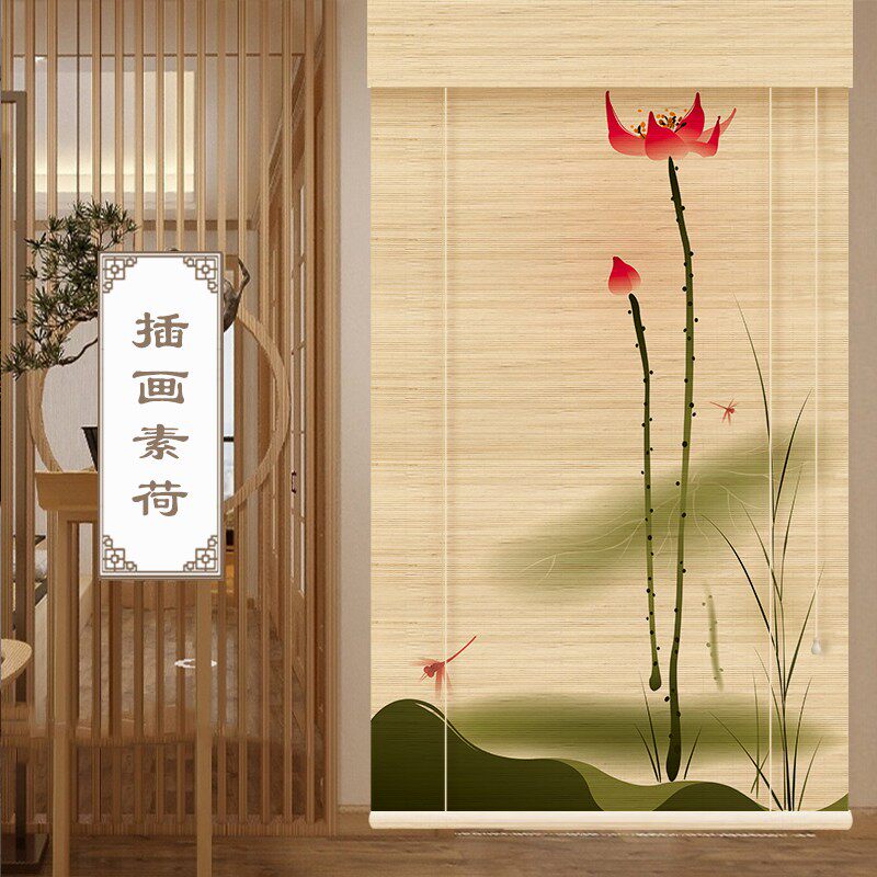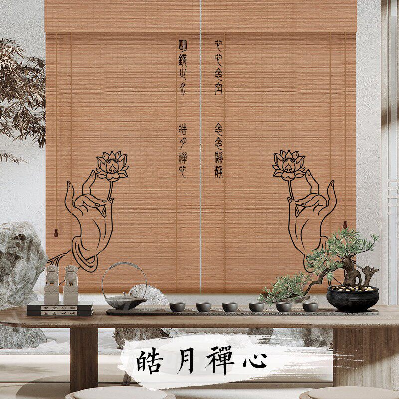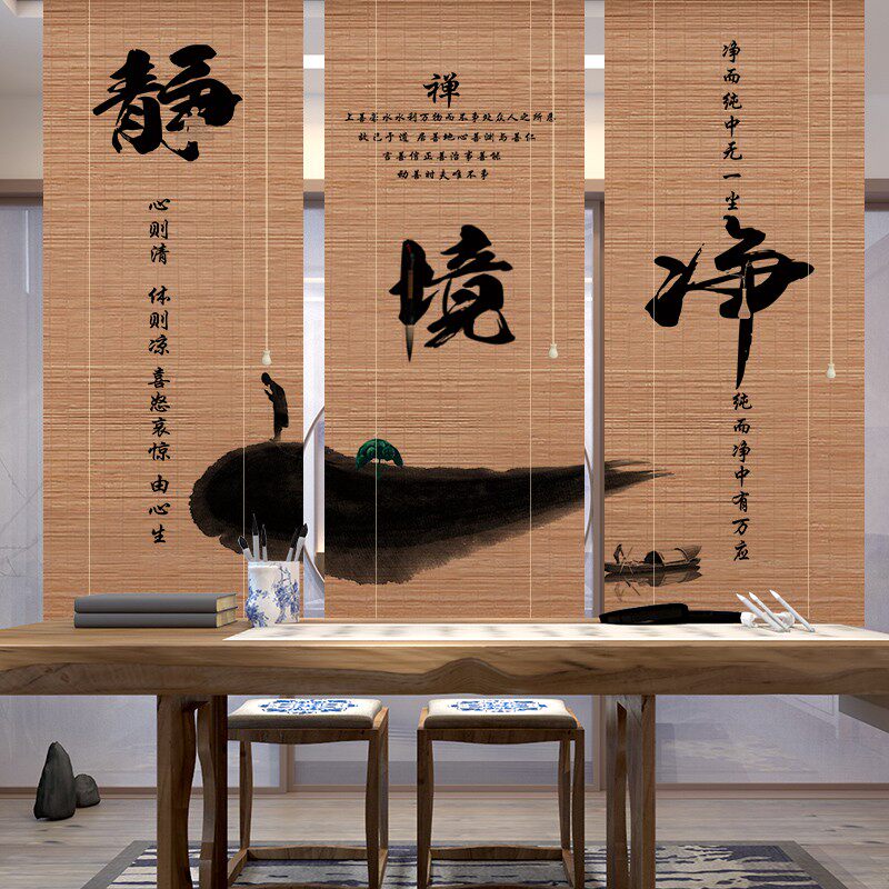 Tea Ceremony Zen printed bamboo curtain Curtain Retro Genguan Background Partition Sino-Japanese Style Tea Room Mood Decoration Painting Curtain