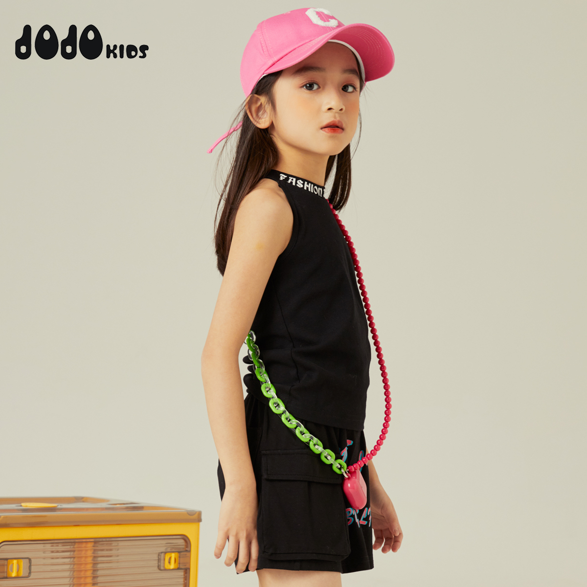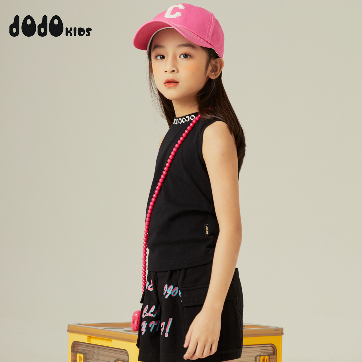 jojo child clothing girl's summer knit vest CUHK Scout girl foreign personality wave card casual workout cool vest