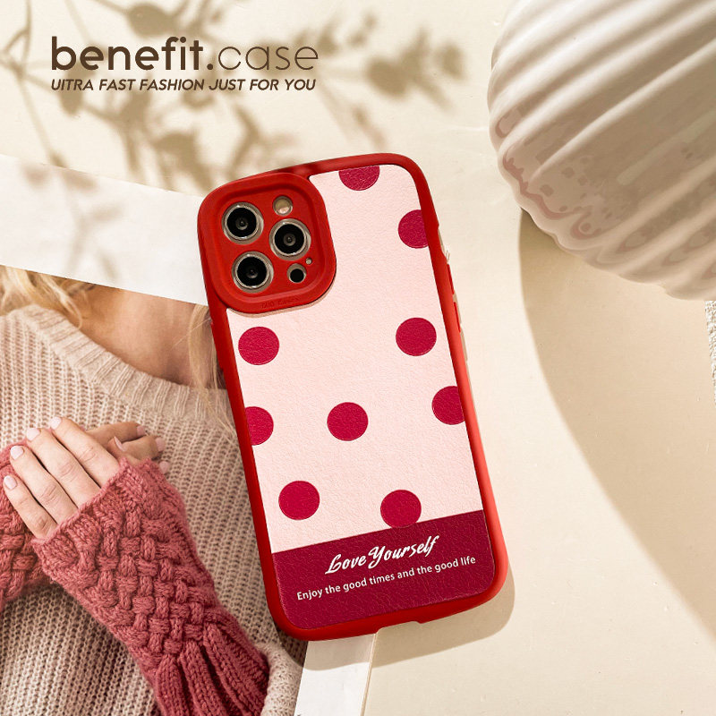 Benefit Japanese and Korean wine red wave points are suitable for Apple 13promax mobile phone case iphone12 silicone mini anti-fall xsmax small fragrance xr sweet 8pl