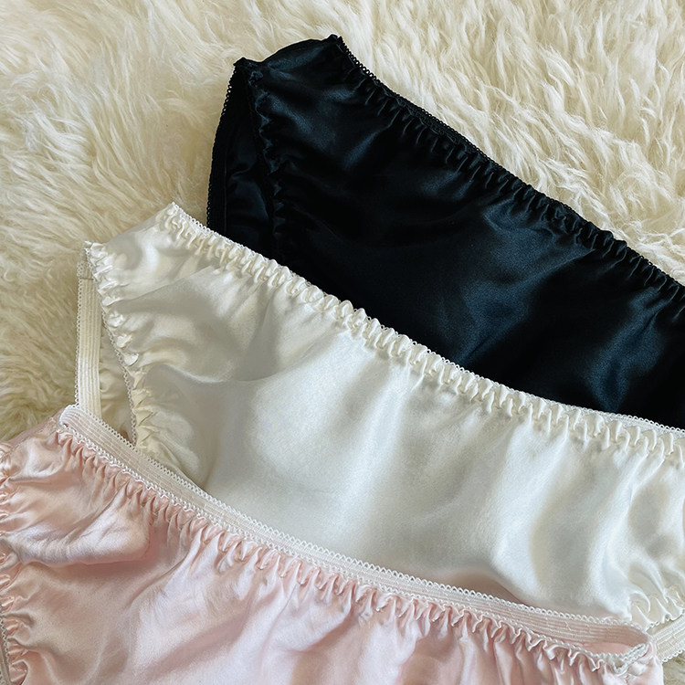 Fashion Briefs Lady Sexy Silk Slip Breathable Triangle Pants Genuine Silk Satin Crepe Satin High Waist Safety Pants Mulberry Silk