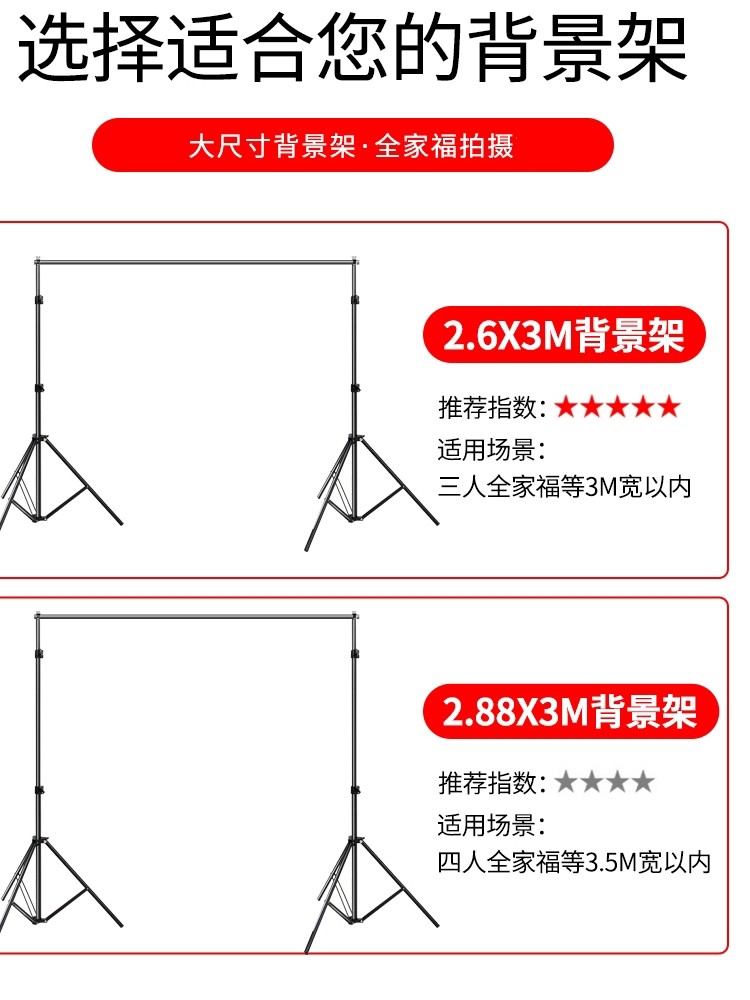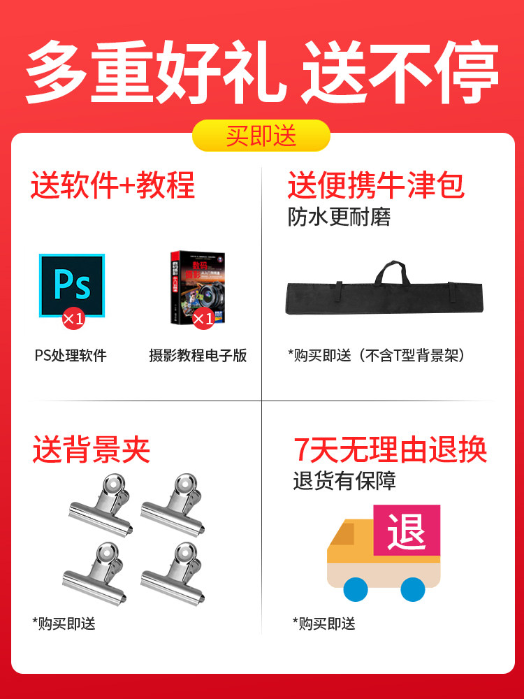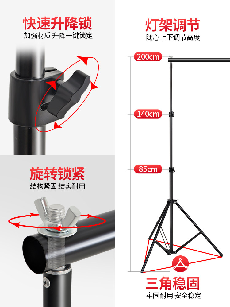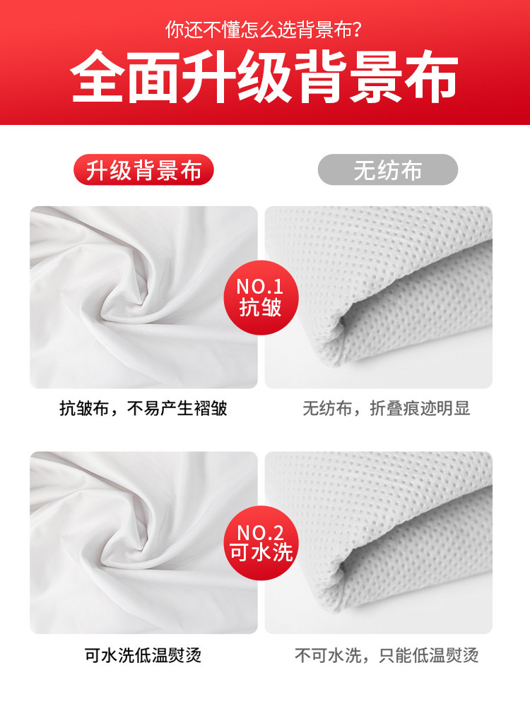Add the rough paragraph 2 * 2M background frame 2 * 3M fine suede anti-wrinkle cloth (default white) send the package and add the coarse section 2 * 2M background frame 2 * 3M suction light background cloth (default black) send