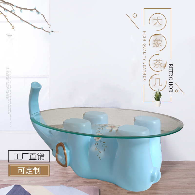 Nordic Designer Living Room Glass Fiber Tea Table Elephant Animal Tea Table Brief Creative Hand-painted shaped Profiled Tea Table
