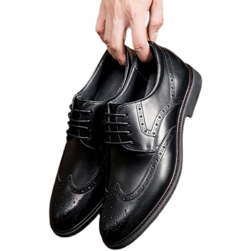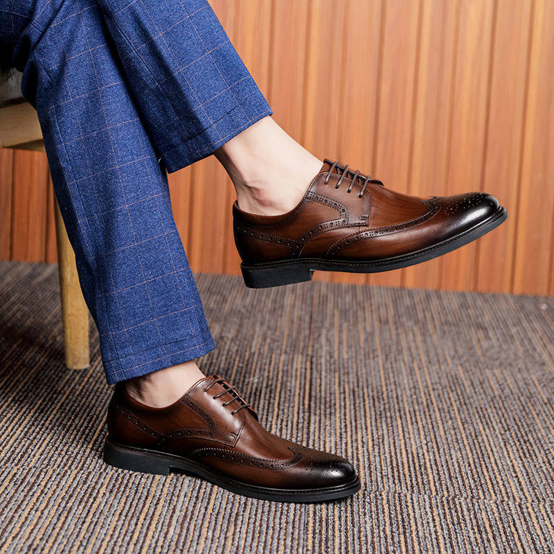 Top layer cowhide high-end new men's brogue carved leather shoes British style retro business formal dress real cowhide shoes