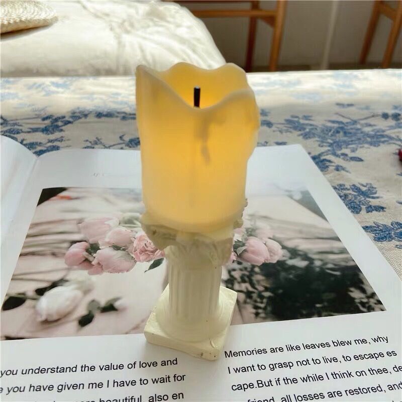 ins wind Roman candlestick simulation candle night light retro gift desktop desk arrangement decoration bedroom decoration