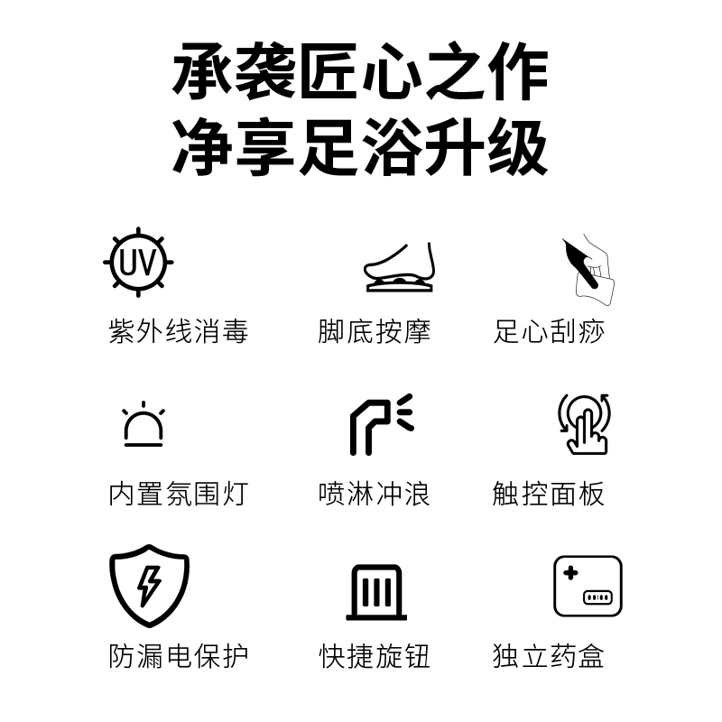 Variable speed massage Intelligent foot bath mode Constant temperature adjustment Timing LCD display Infrared sterilization surfing function Automatic massage