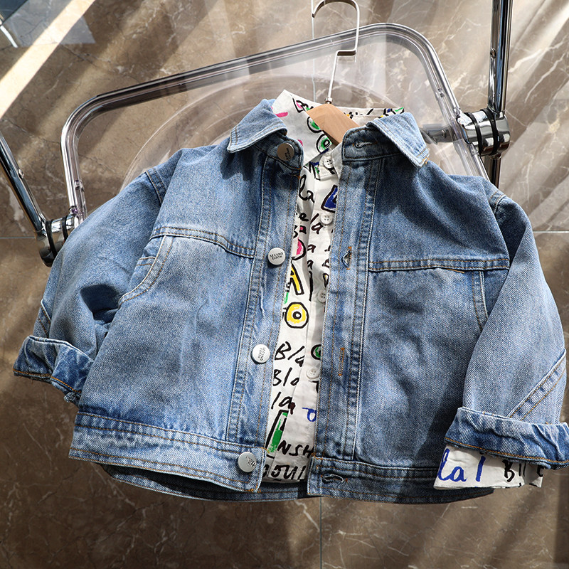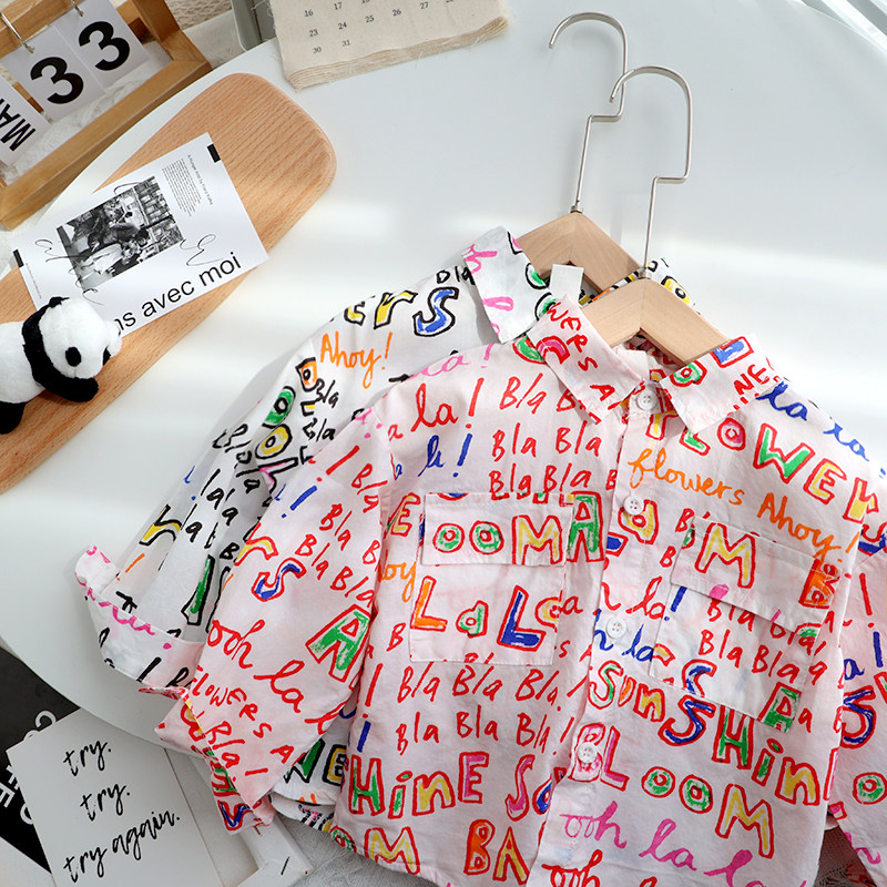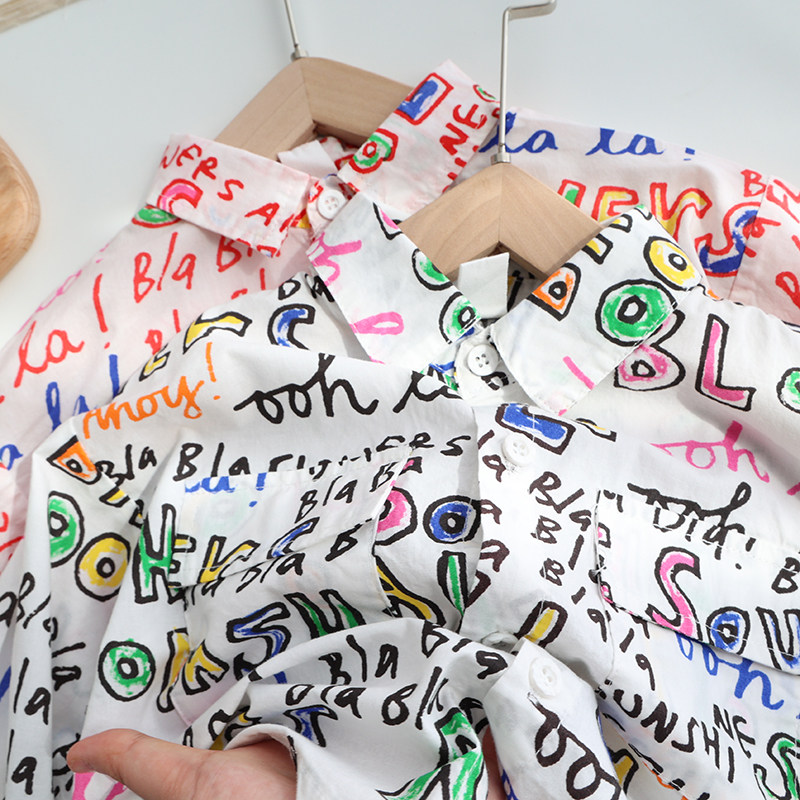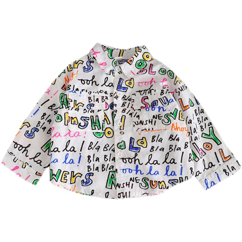 Western style baby printed letter shirt spring thin section boys and girls cotton shirt children's spring tide