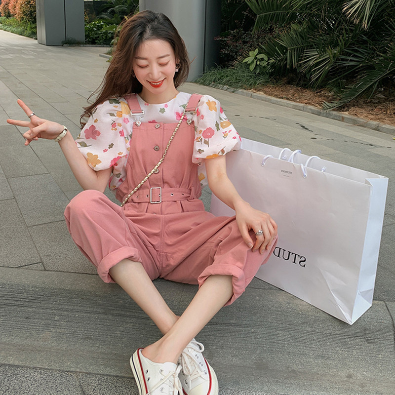 Pink Denim Holding Baby Bag Pants Woman Summer Thin 2022 new small sub 90% Overalls two-piece suit