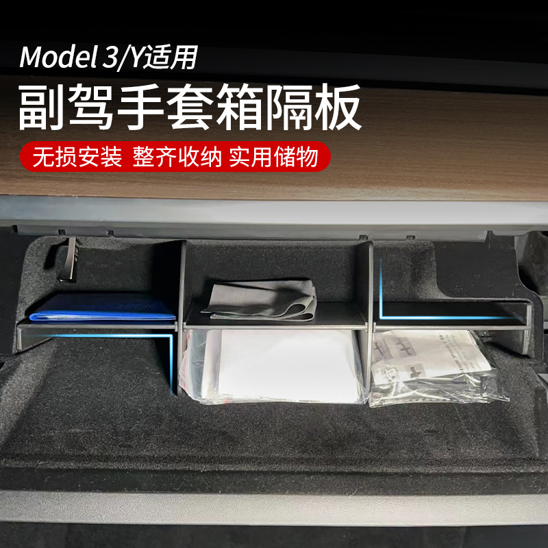 Suitable for Tesla Model3 Y co-pilot glove box partition car storage storage box interior modification