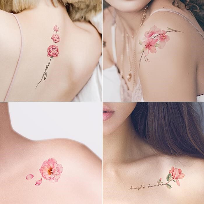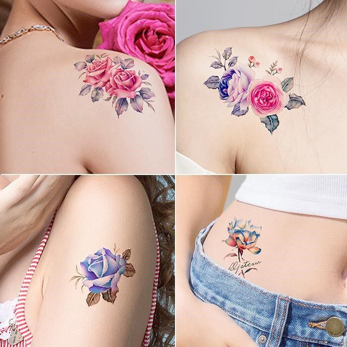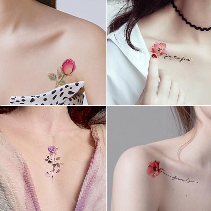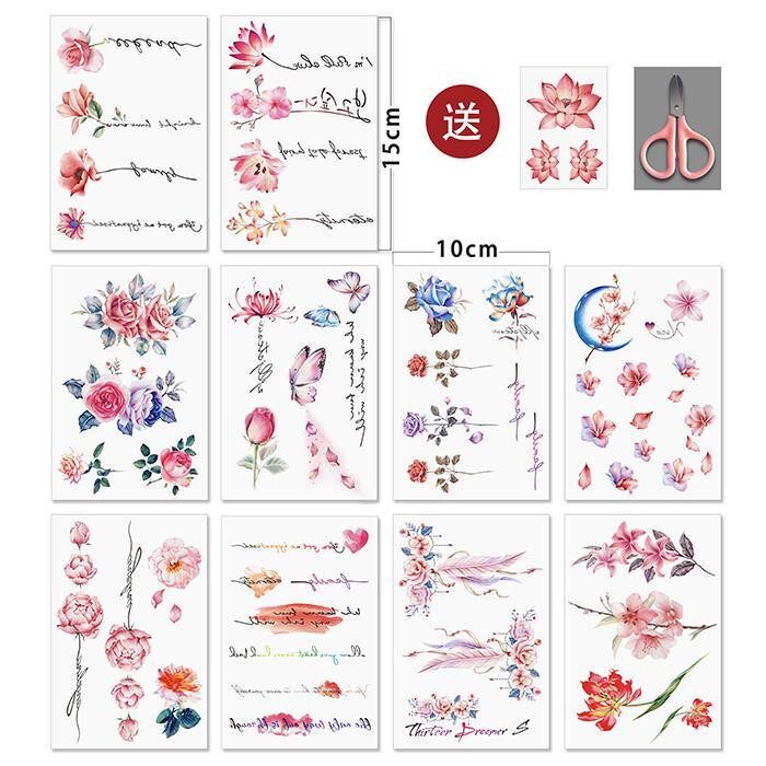 10 Zhang Xiaoqing New Internet Red Ins Wind Tattoo Sticker Semi-Lock Bone Chest Front Leg Flowers Waterproof Emulation Female