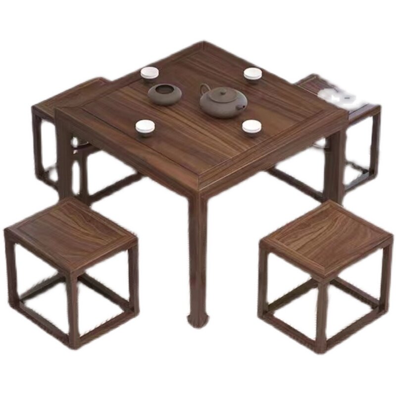 New Chinese-style solid wood square table dining table and chair combination old elm Baxian table chess and card square tea table square dining table