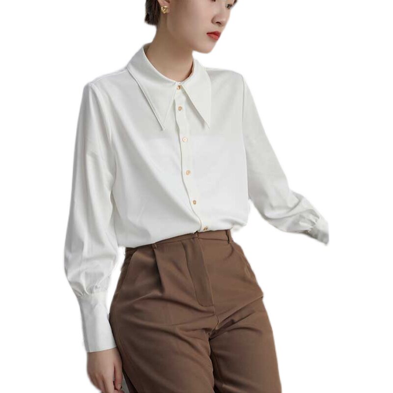 Mularsa high-end spire white shirt woman 2022 Spring new acetate satin stack wearing long sleeves shirt