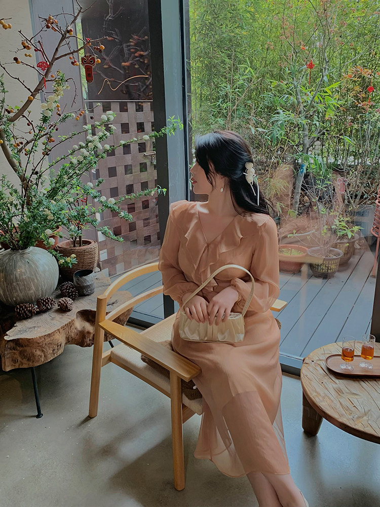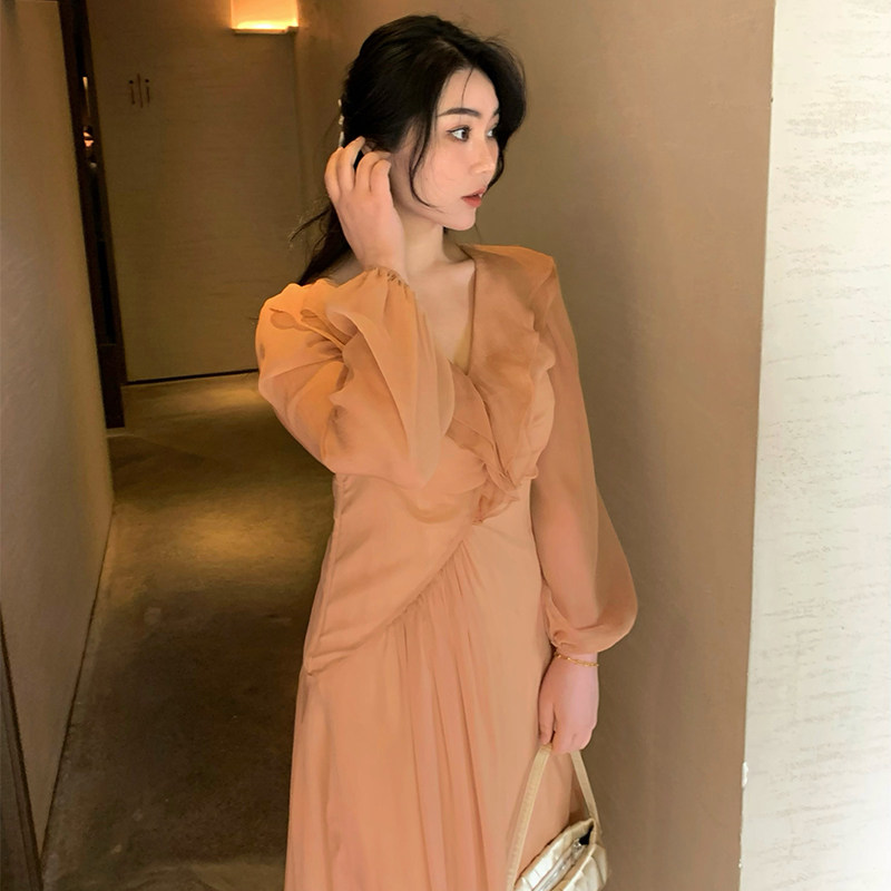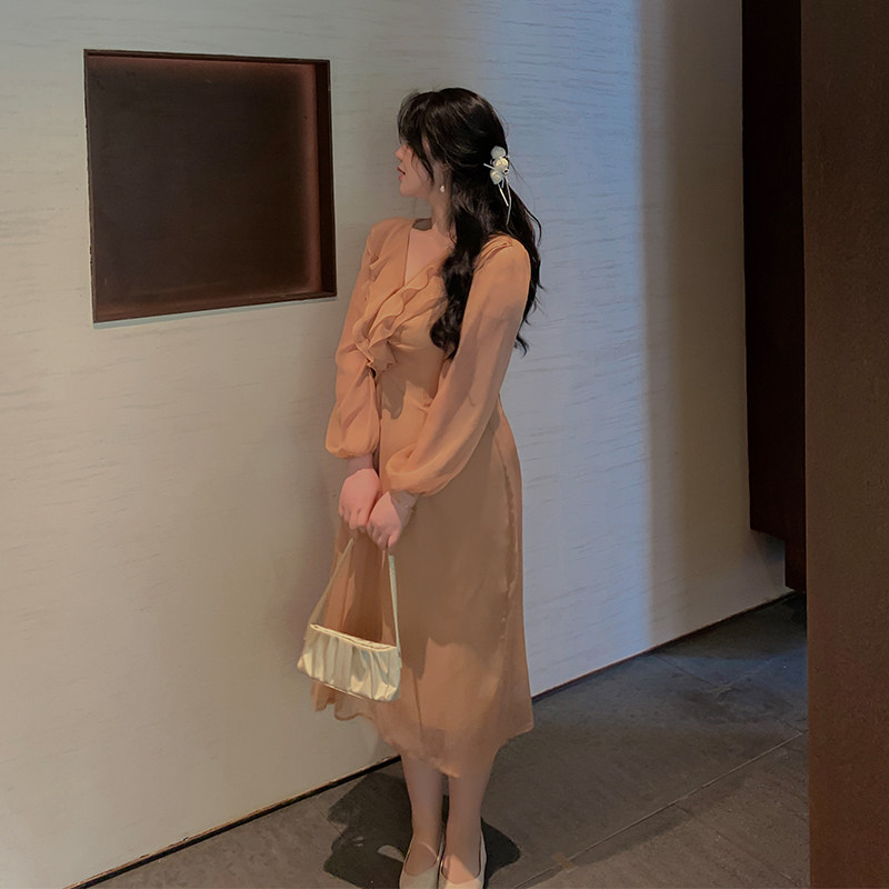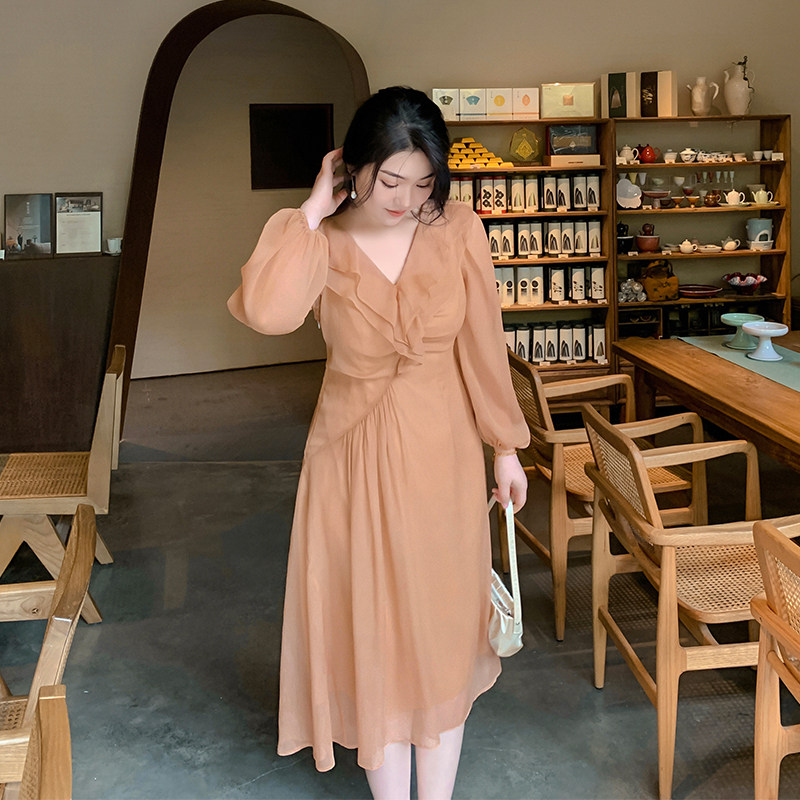 Acfat Agaric Side Foreign Dress Fat MM2022 Spring Method V Collar Irregular Shade of a Long Skirt Q1132