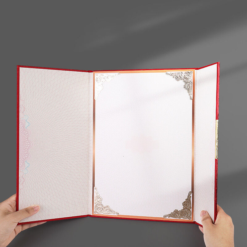 A4 Vertical Version Honor Certificate Custom Inner Page Print Completion Certificate Hire Book Contest Awards Enterprise Upscale Shell Envelope for Bronzing Cover