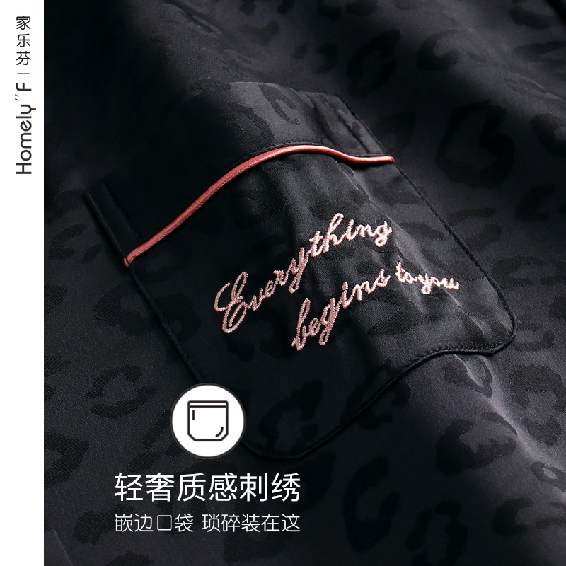 Sleeping Dress Lady Sleepwear Spring Autumn Season Silk Ice Silk Slim Fit 70% Sleeves Cardiovert Shirt Emulation Silk BAO WEN Spring Summer-Taobao