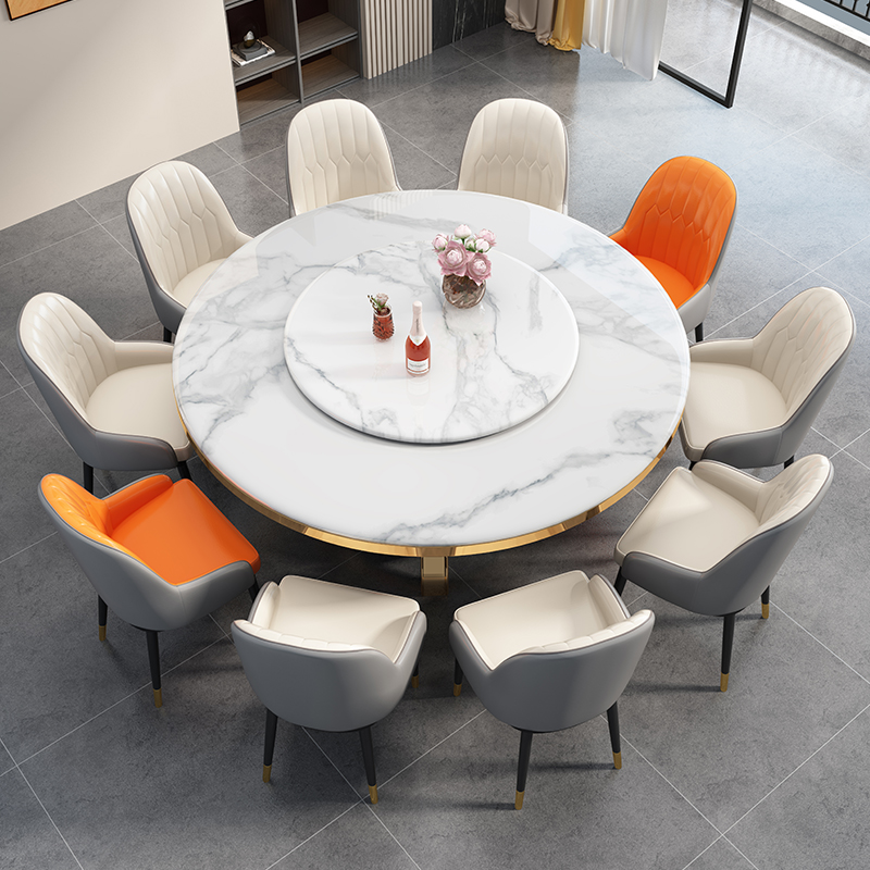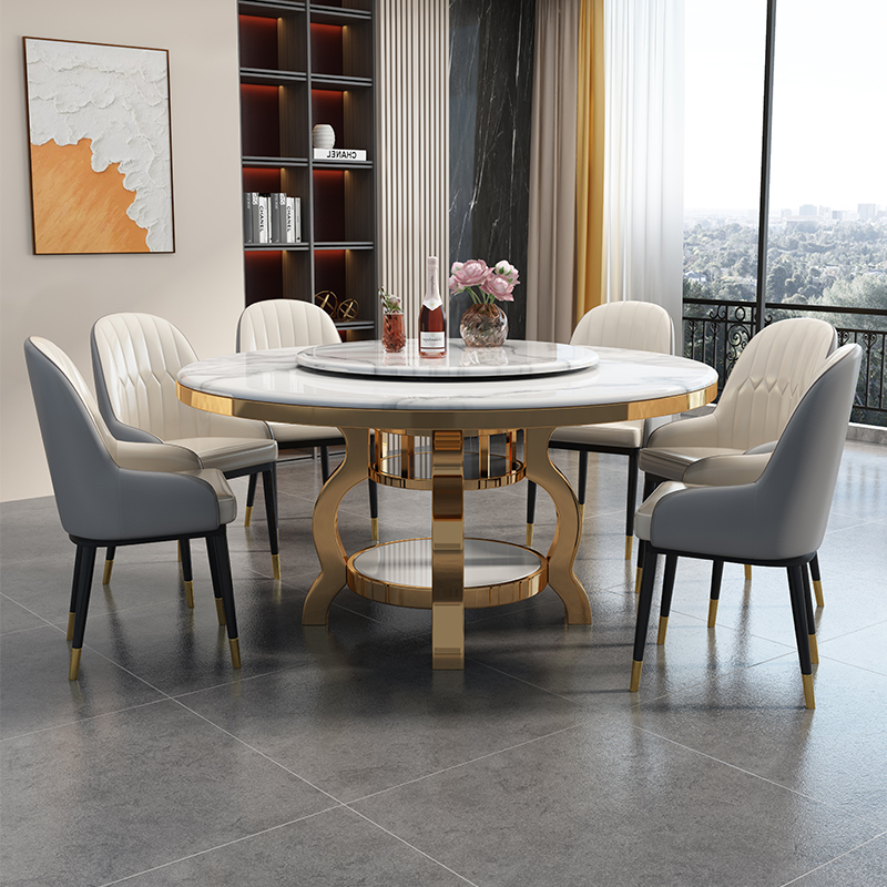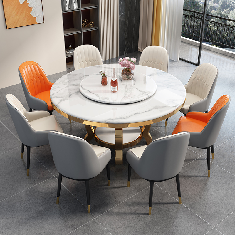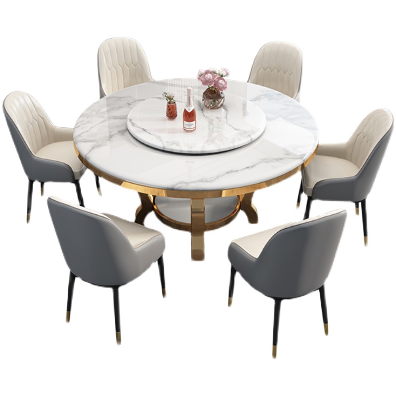 Modern light lavish rockboard dining table and chairs combined modern minimalist marble round table with turntable induction cookout large terrace number table