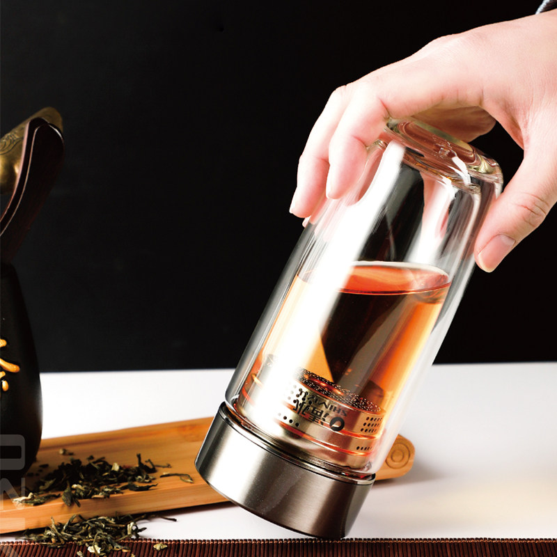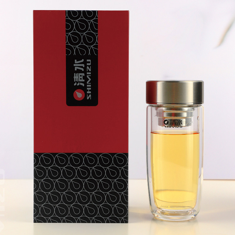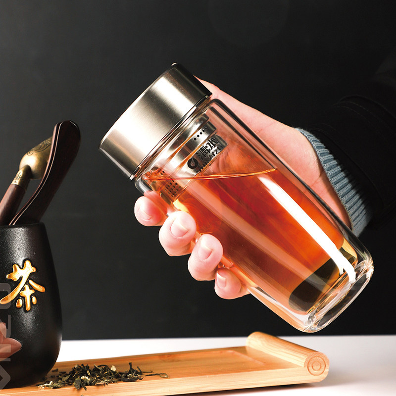 Shanghai clean water tea-carrying glass-cup double layer portable creative office business tea cup high boron silicon upscale tea cup