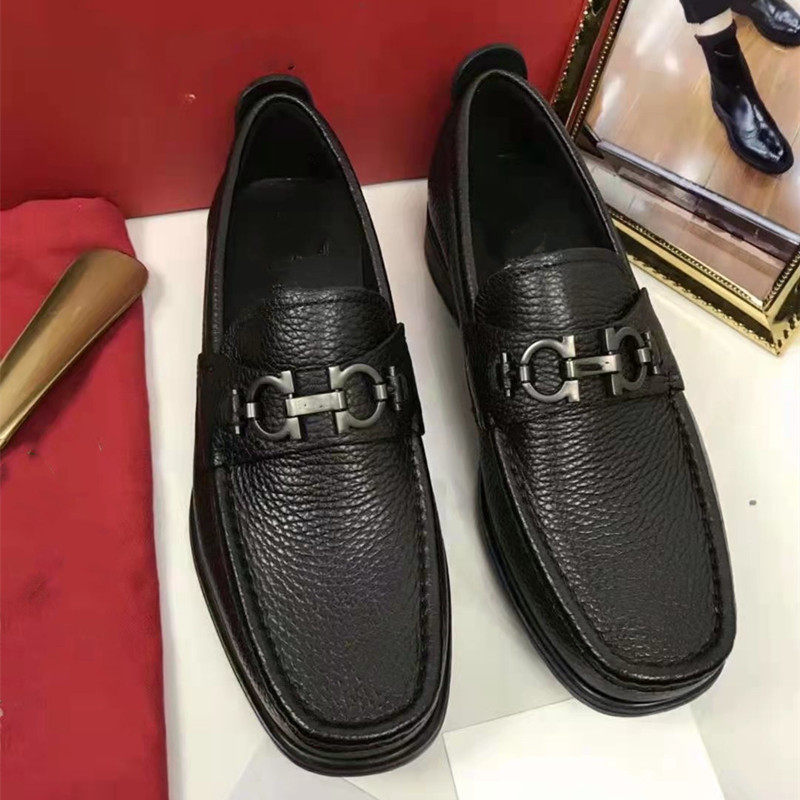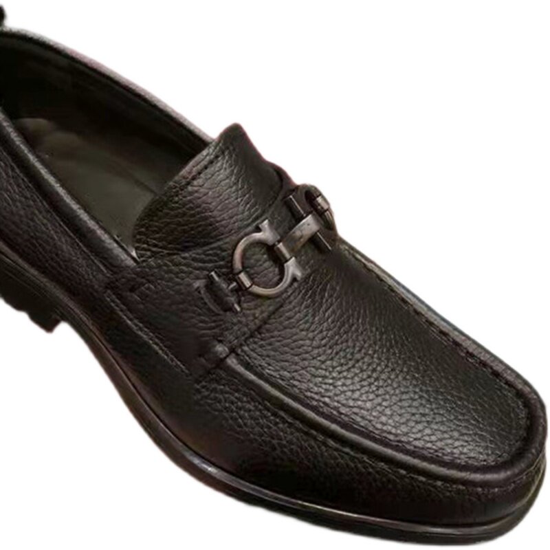 European station new metal buckle leather casual leather shoes European station high-end Korean version thick-soled slip-on retro men's shoes