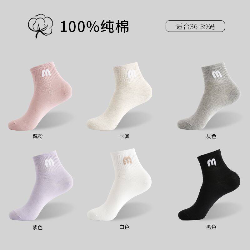 Zhejiang Zhuji socks 100% cotton women's autumn and winter cotton mid-tube socks cotton four seasons cotton socks breathable sports