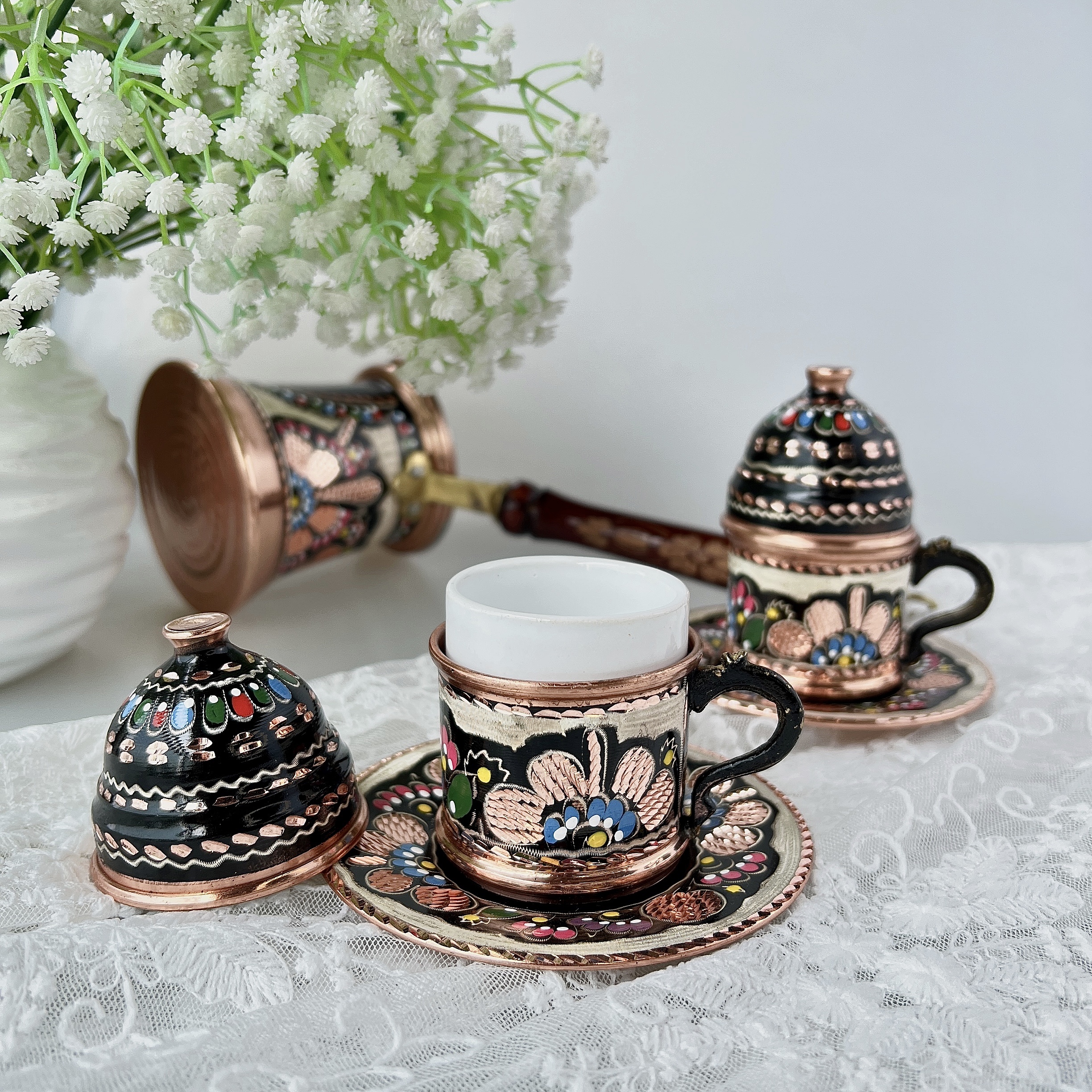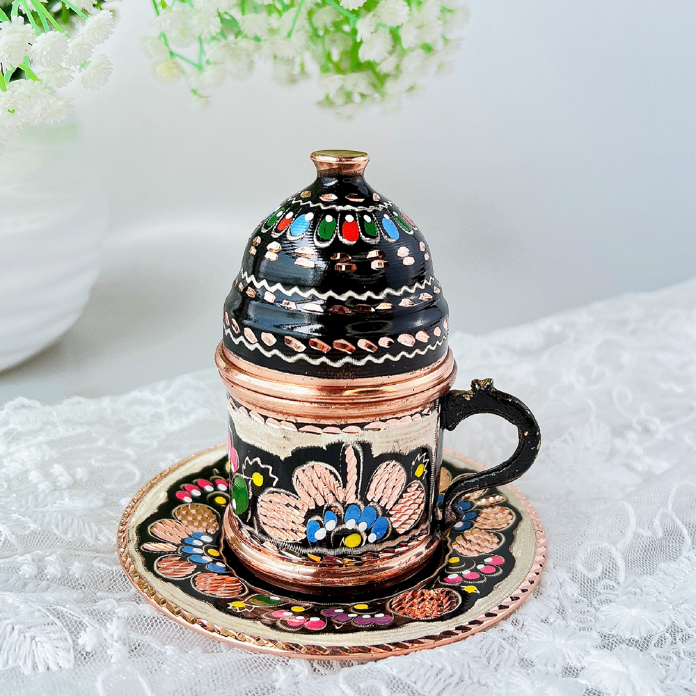 High face value Turkey imports pure handmade colour painted carved red copper coffee cup precious metal palace winehand cup