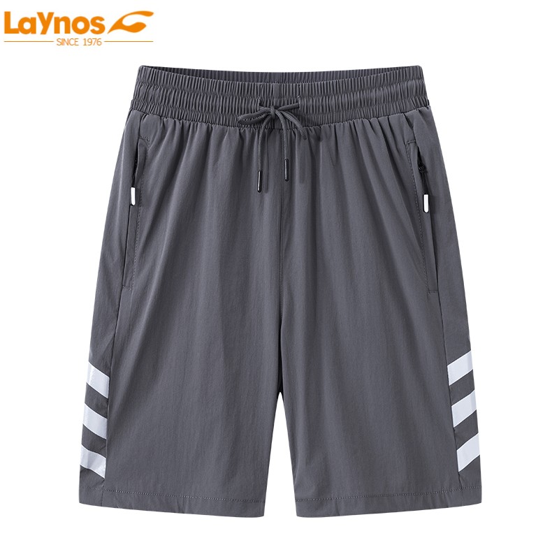 LAYNOS Reynolds outdoor men's warp knitted thin strip ice silk five-point pants nylon elastic quick-drying thin casual five-point pants