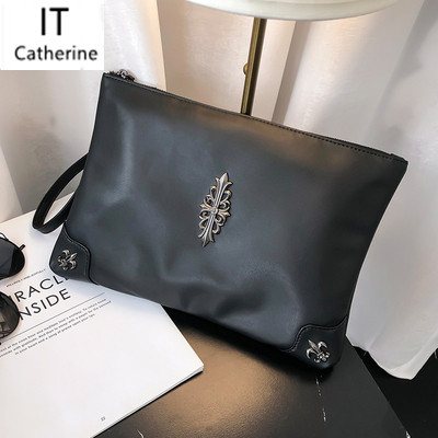 Hong Kong IT Catherine soft leather new Korean version of the clutch bag trendy rivets casual shoulder diagonal iPad bag
