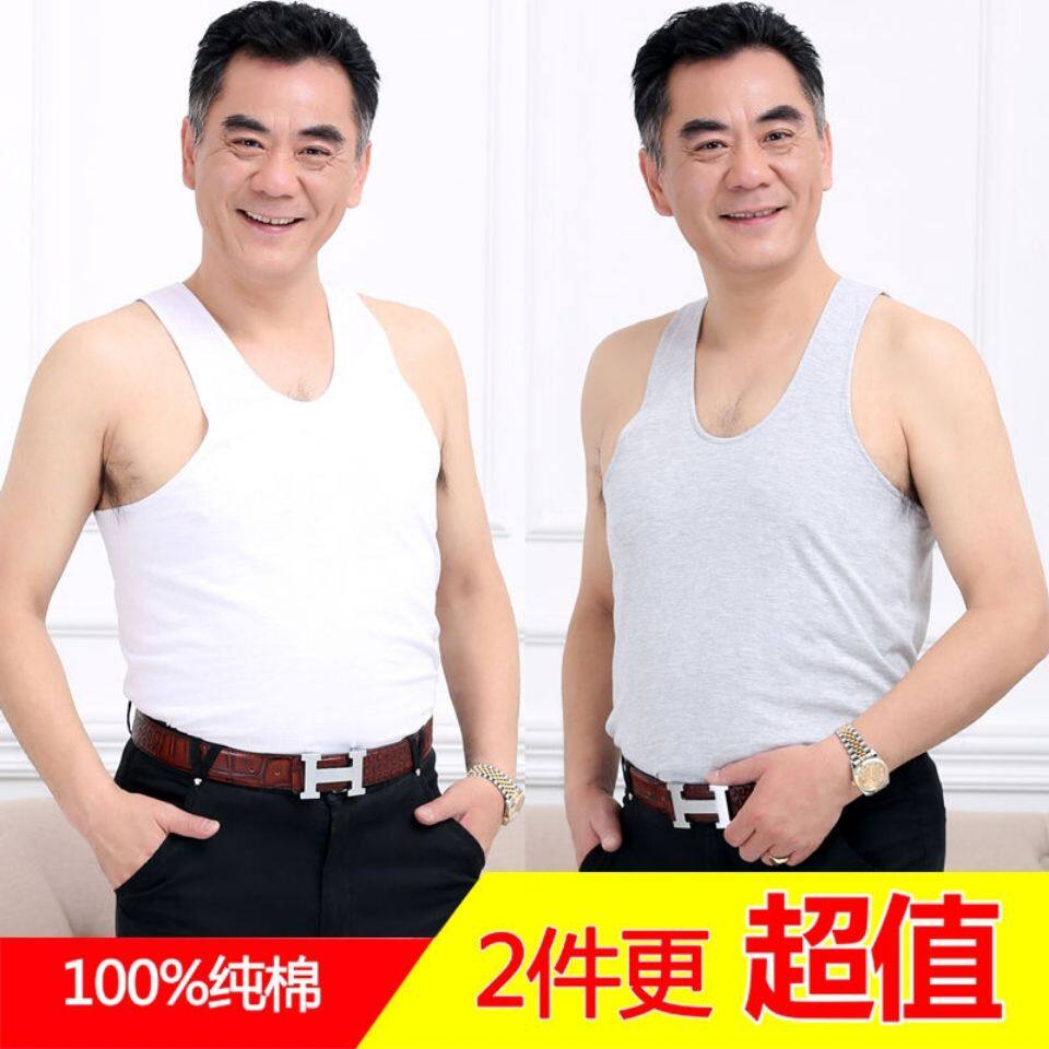 Old men's shirt middle-aged and elderly cotton hurdle white vest men's summer large size cotton round neck short-sleeved loose undershirt