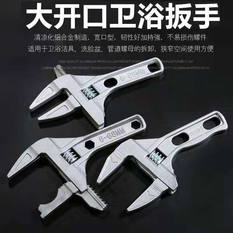 Upgrade With Removable Arc Double Face Tooth Silver Color Upgrade Removable Arc Double Face Tooth Black Multifunction Belt Blade Triple Use Bathroom Wrench Dual-use Aluminum Alloy Wrench 6-68 mm Silver Bi Aluminum Alloy