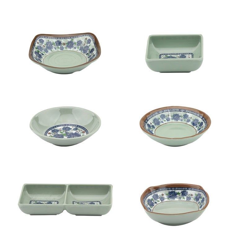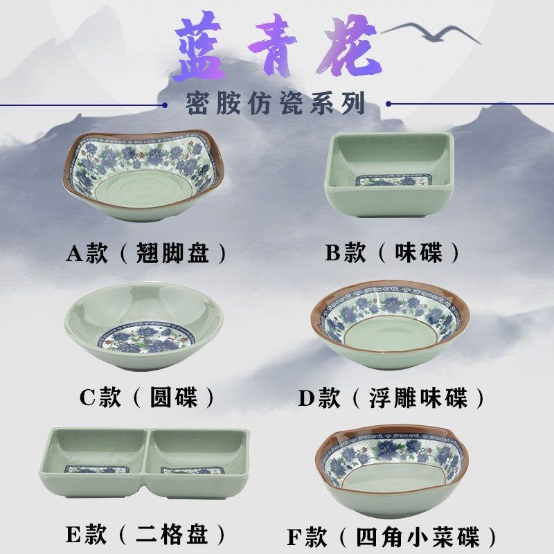 Blue Green Flowers A5 Dense Amine Taste Saucer Saucer Saucer Dish Imitation Porcelain Cutlery Plastic Small Saucer Round Square Sauce Dish-Taobao