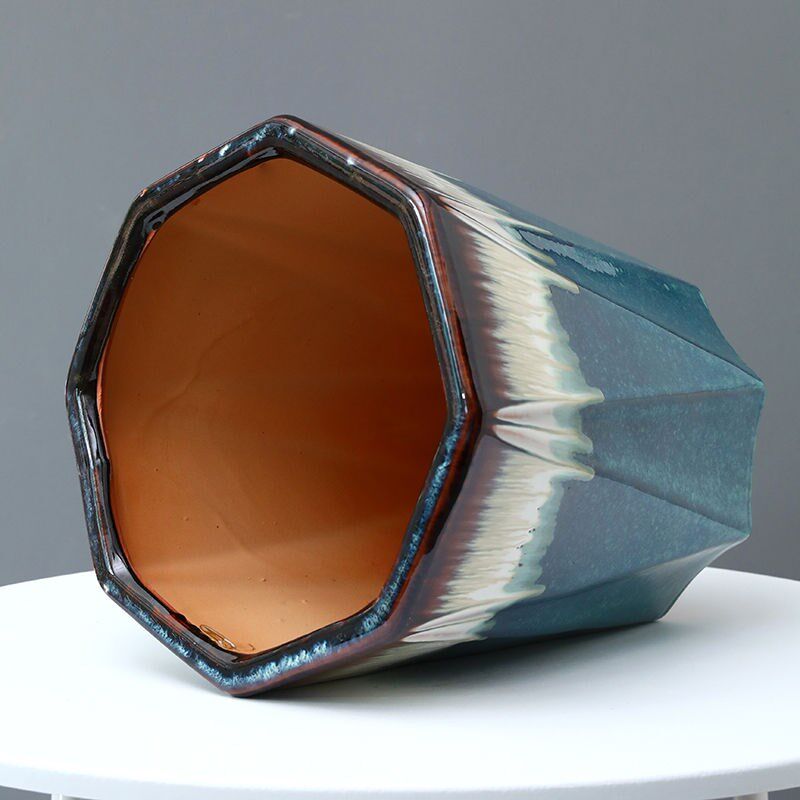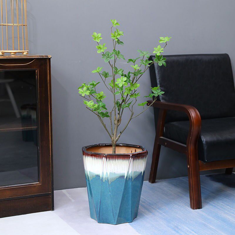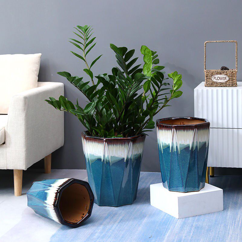 Ceramic flowerpot clearance processing large floor-to-ceiling octagonal ceramic simple balcony garden fortune tree green planting flowerpot