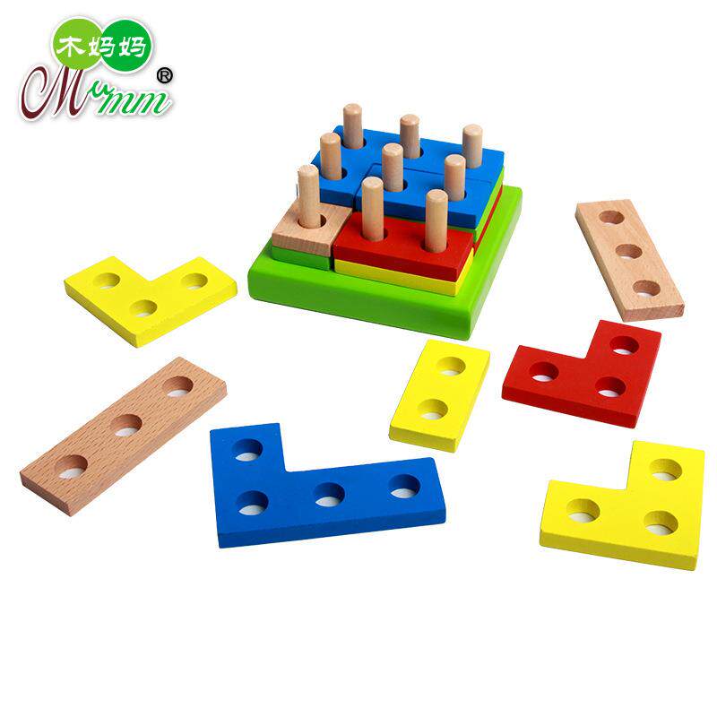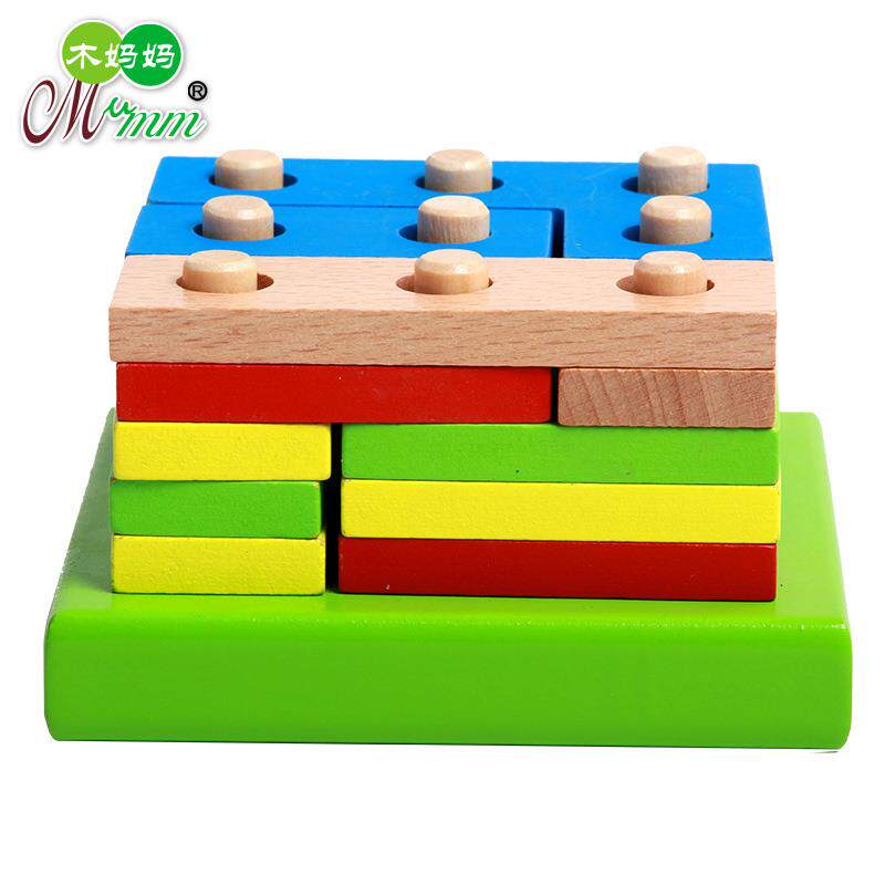 Wood Moms Children Puzzle Early Teaching Shapes Cognition Pairing Building Blocks Combined 1-6-Year-Old Geometric Building Blocks Assembled Toys