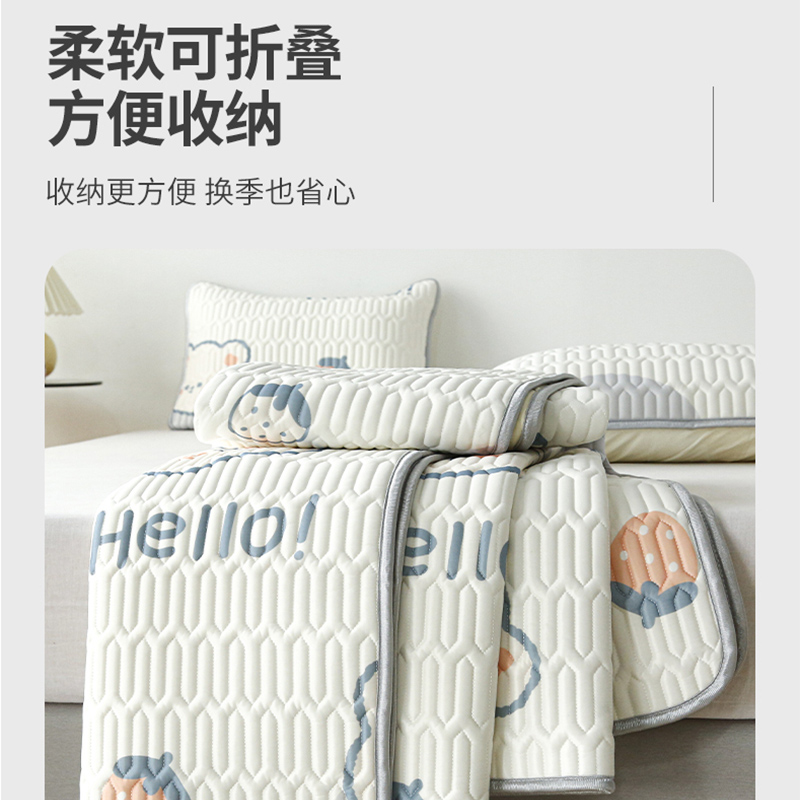 lazzzy ice silk latex cool mat three sets printed summer nude sleep able to fold washed dorm room home XI