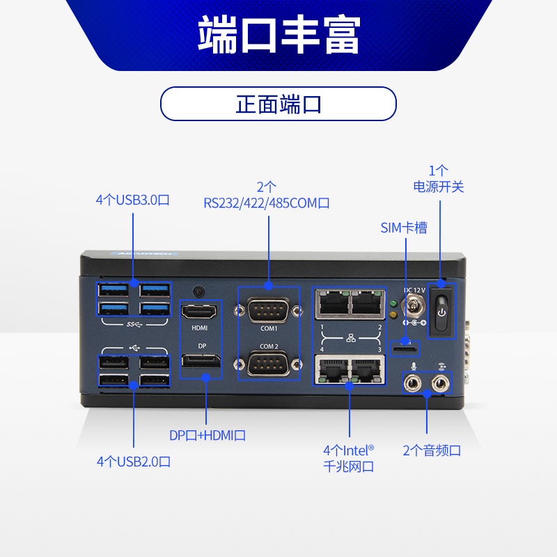 Advantech industrial computer 8th generation fanless mini embedded industrial computer host small server 4 gigabit network port