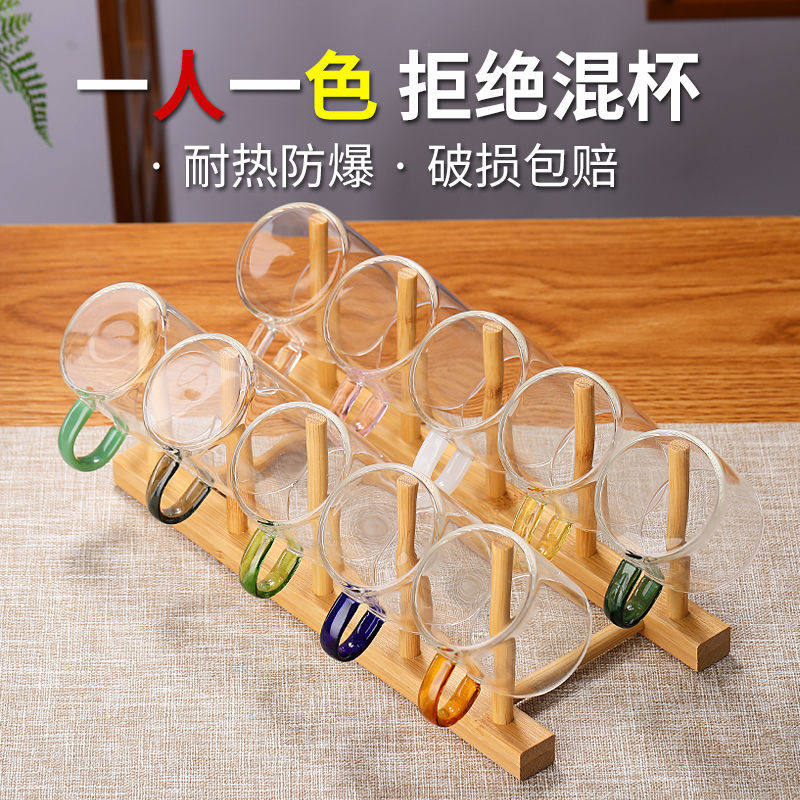 10 pcs of 100ml tea cups with colorful handles 10 pcs of bamboo cup holders 100ml teacups with yellow handles 10 pcs of bamboo cup holders 100ml teacups with transparent handles