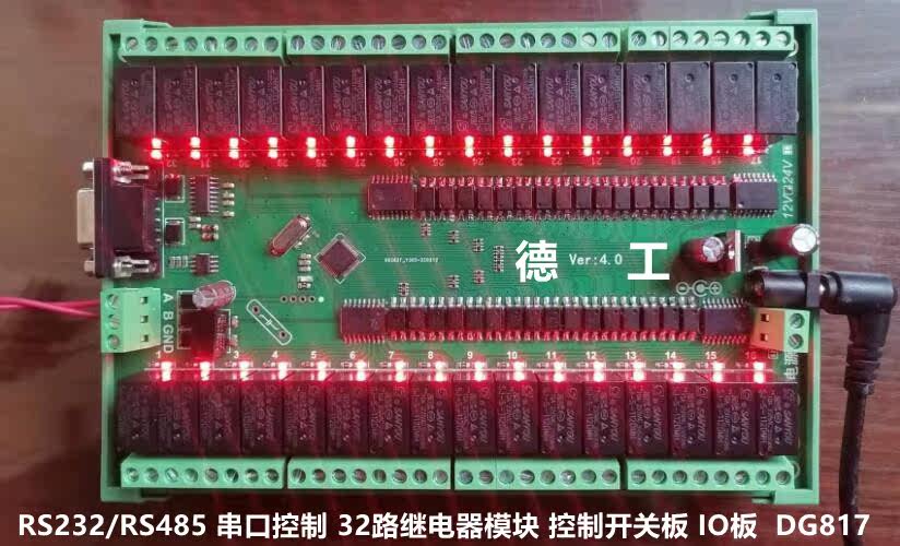RS232 485 serial port control 32 relay module control switch board IO board customizable Detective
