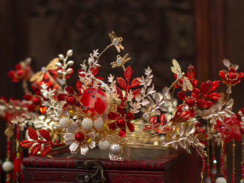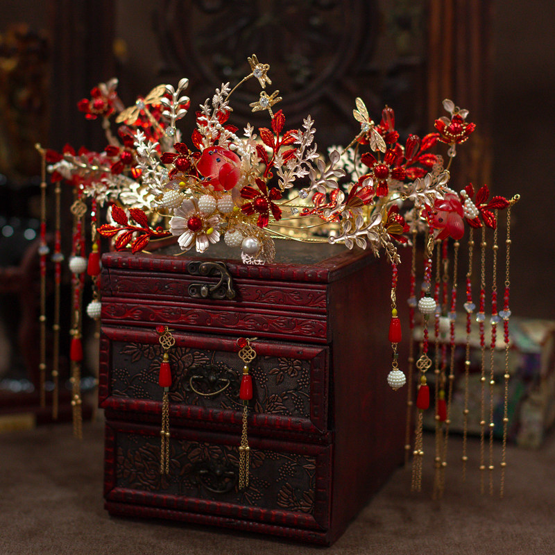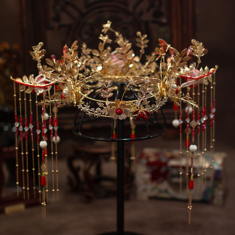 Palace Ancient Dress Accessories Suit Whole Ring Head Crown Retro Style Bridal Bride Wedding Red Glass Flowers to be decorated