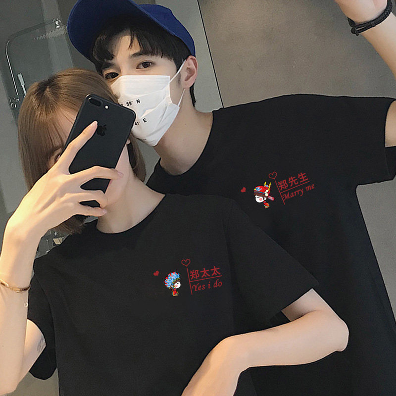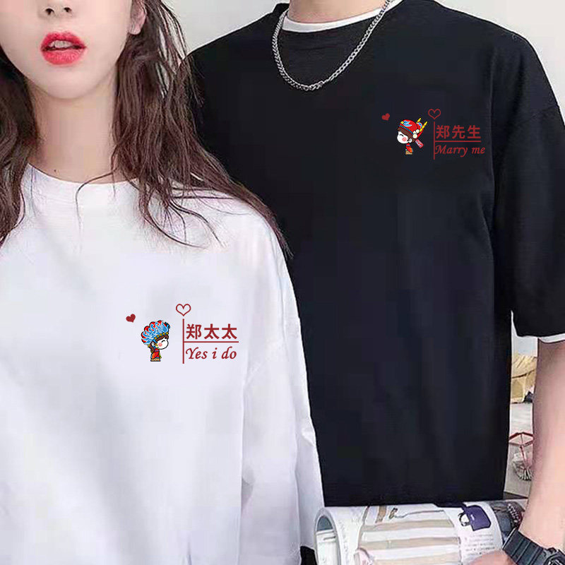 Wedding registration photo couple outfit summer 2022 disoo large size round neck T-shirt female ins trend advanced customization - Taobao